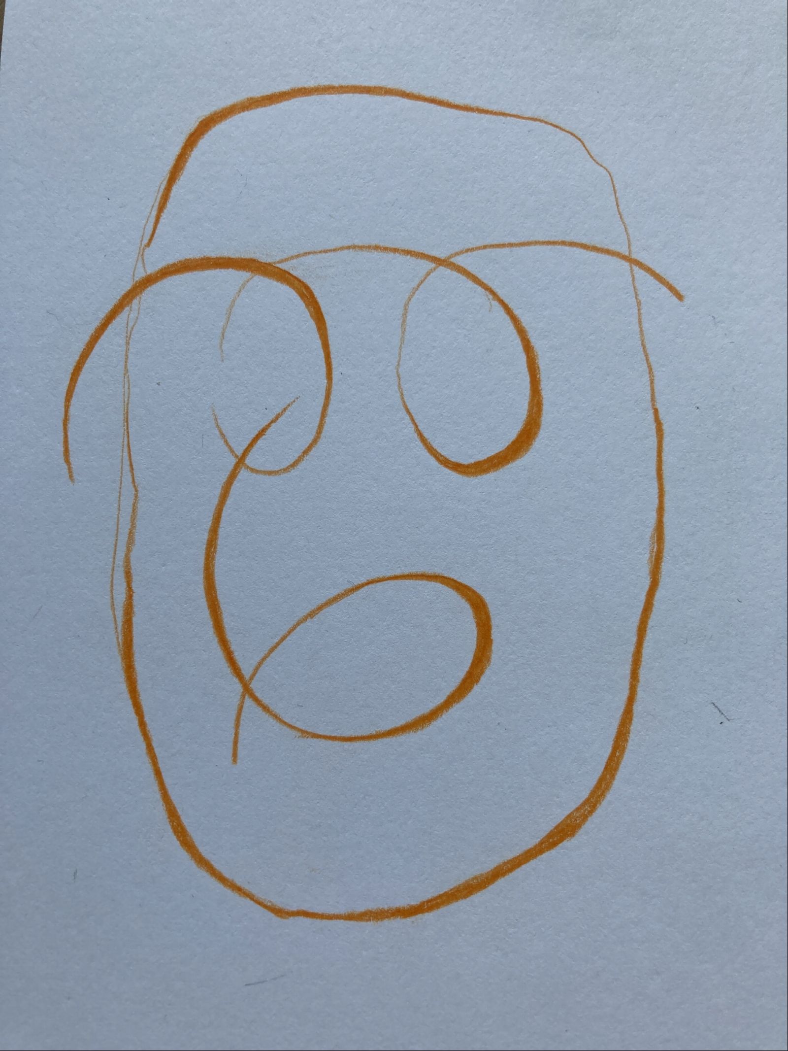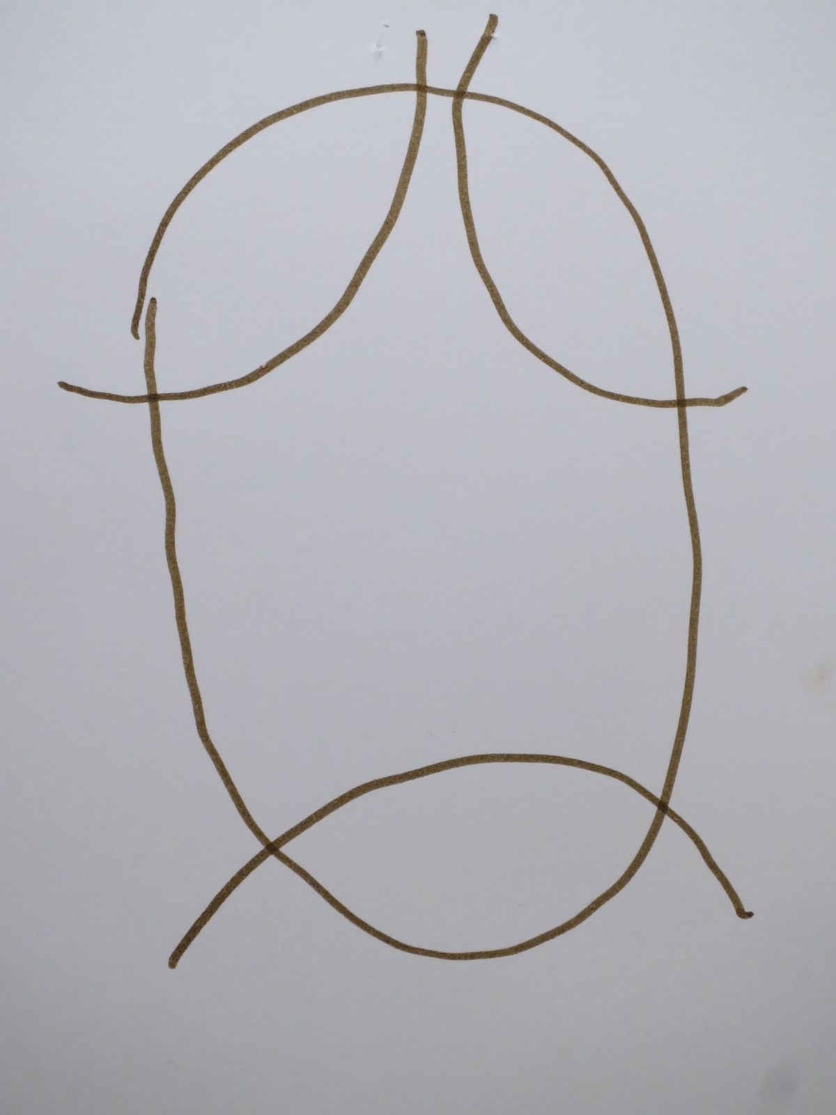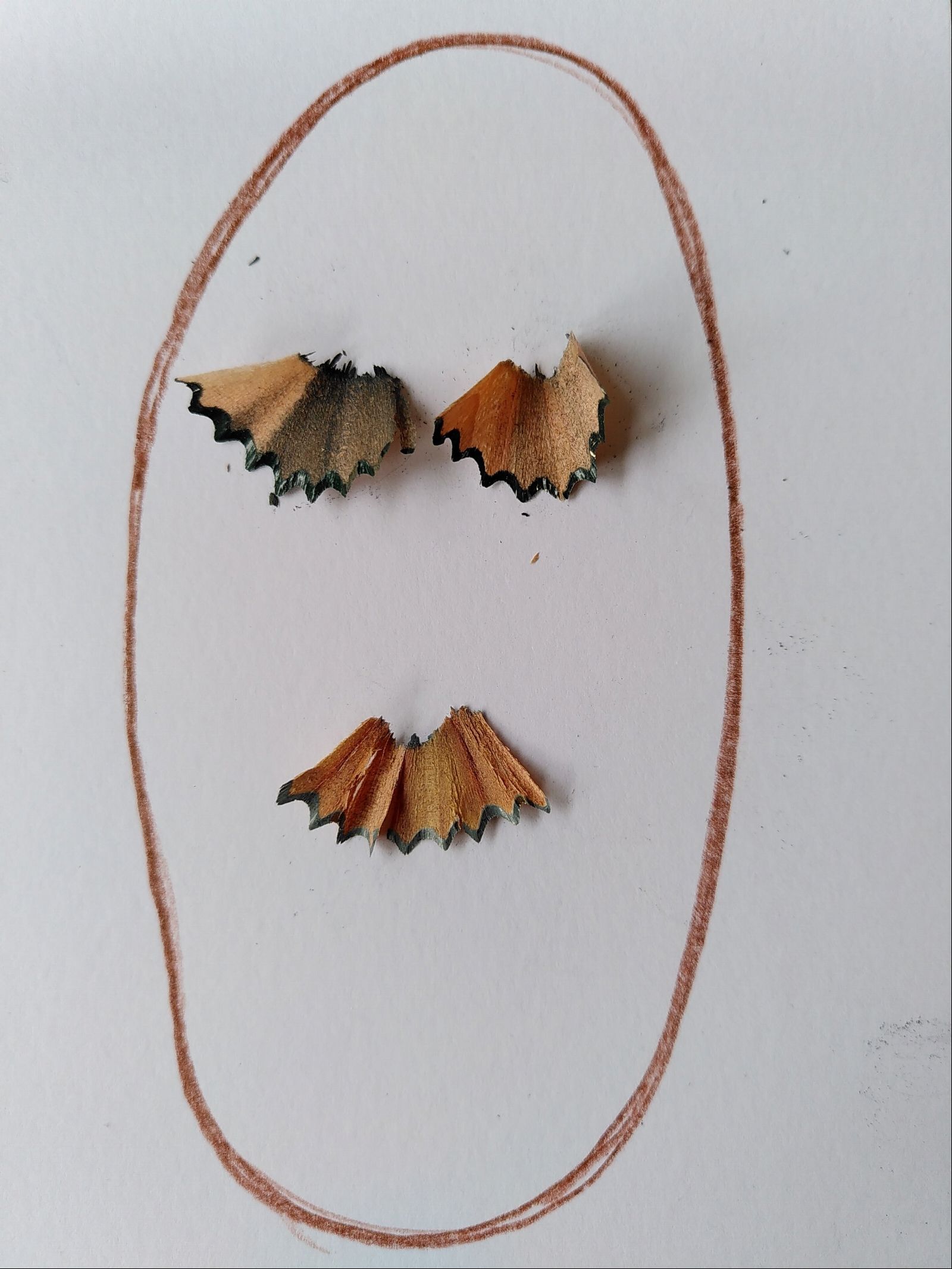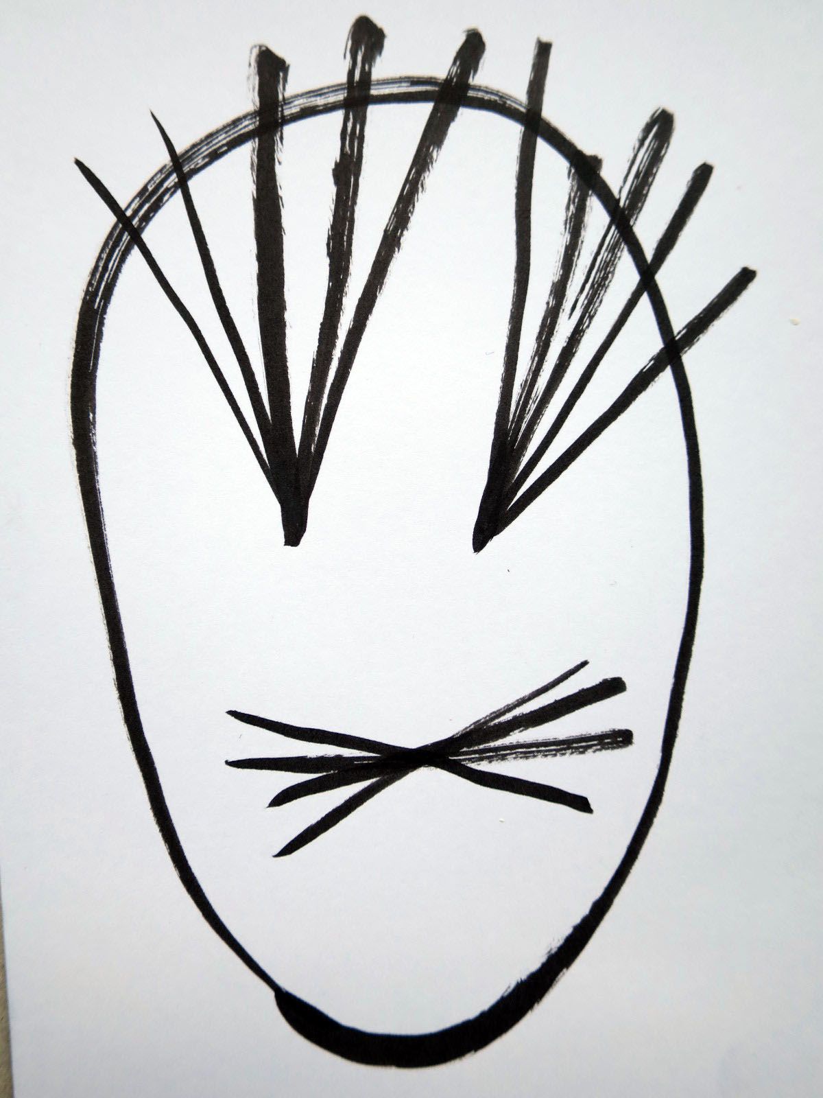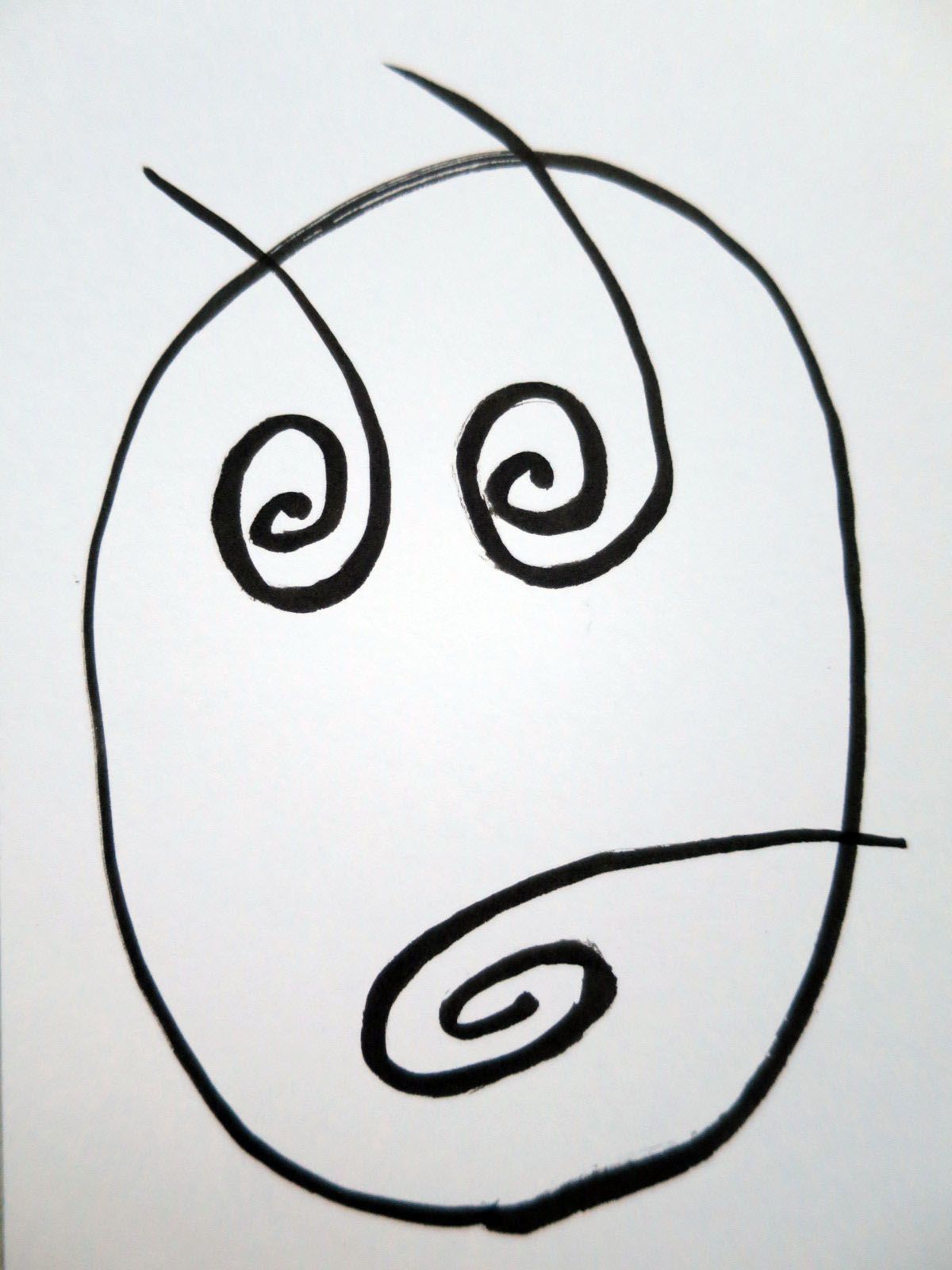 Zeichne ein Oval im Hochformat und ergänze es mit Formen so dass ein bizarres Gesicht zu erkennen oder zu erahnen ist. Das Bild kann gezeichnet, geklebt, gemalt, gelegt, gestempelt oder ... werden.