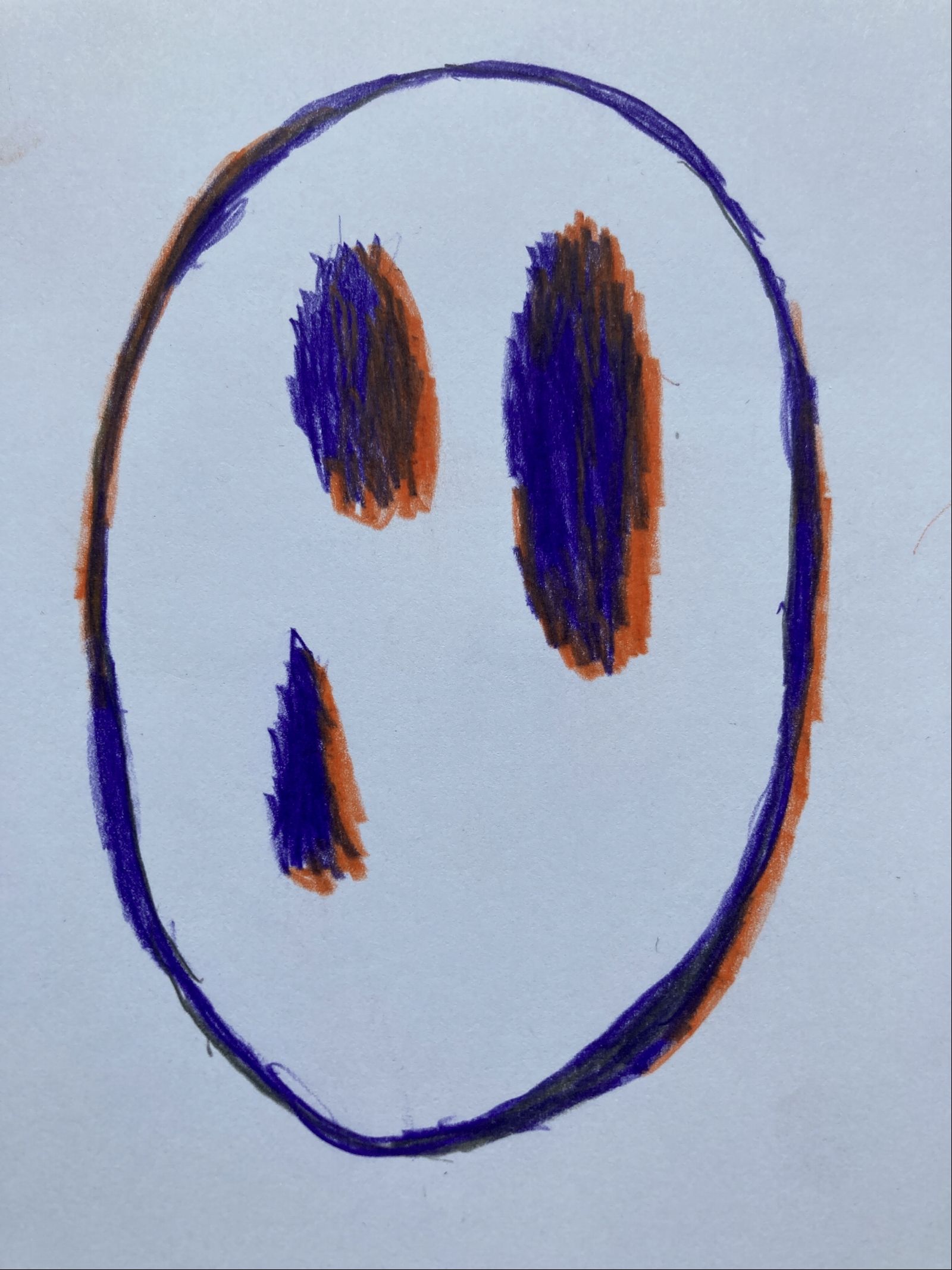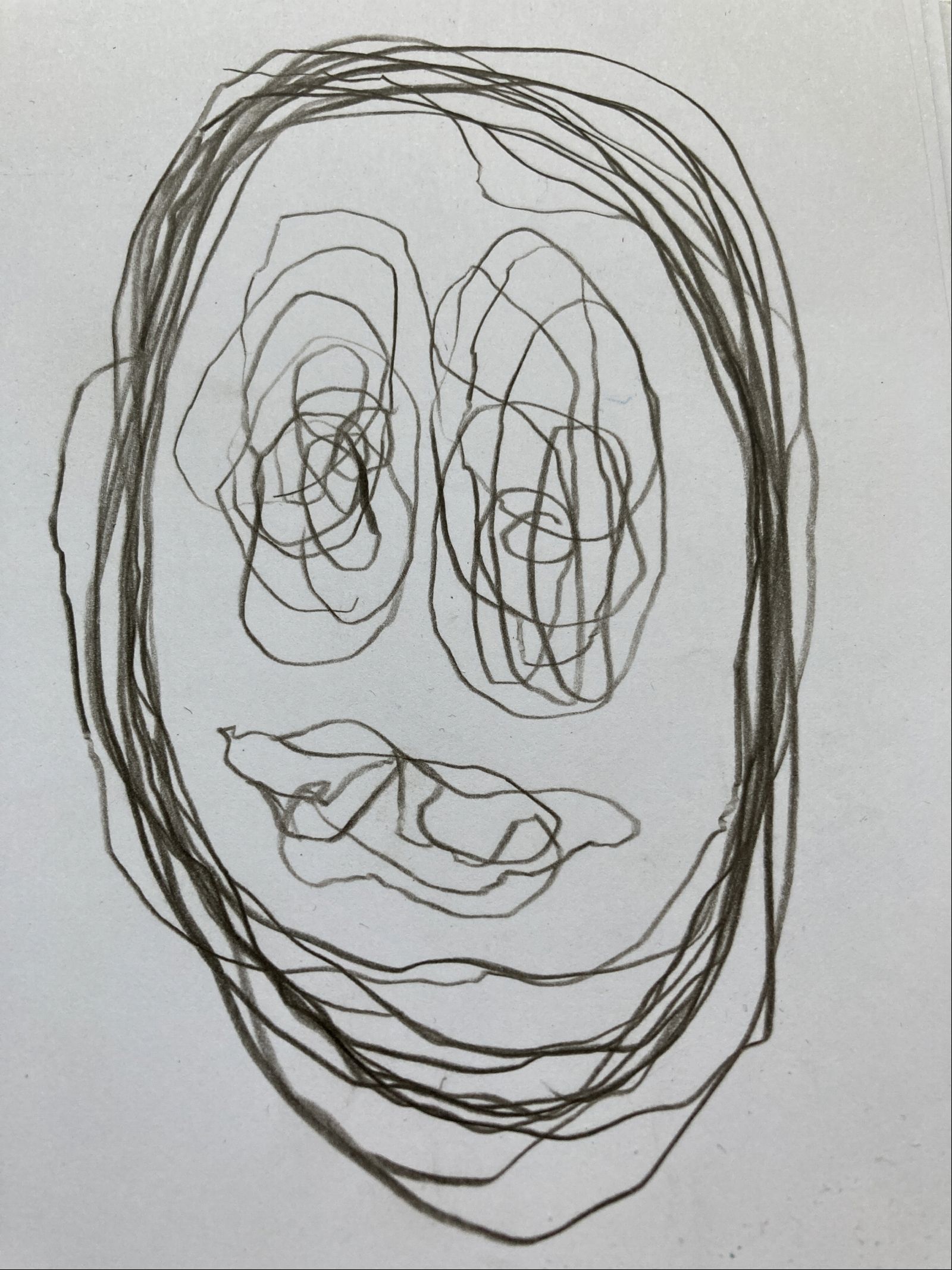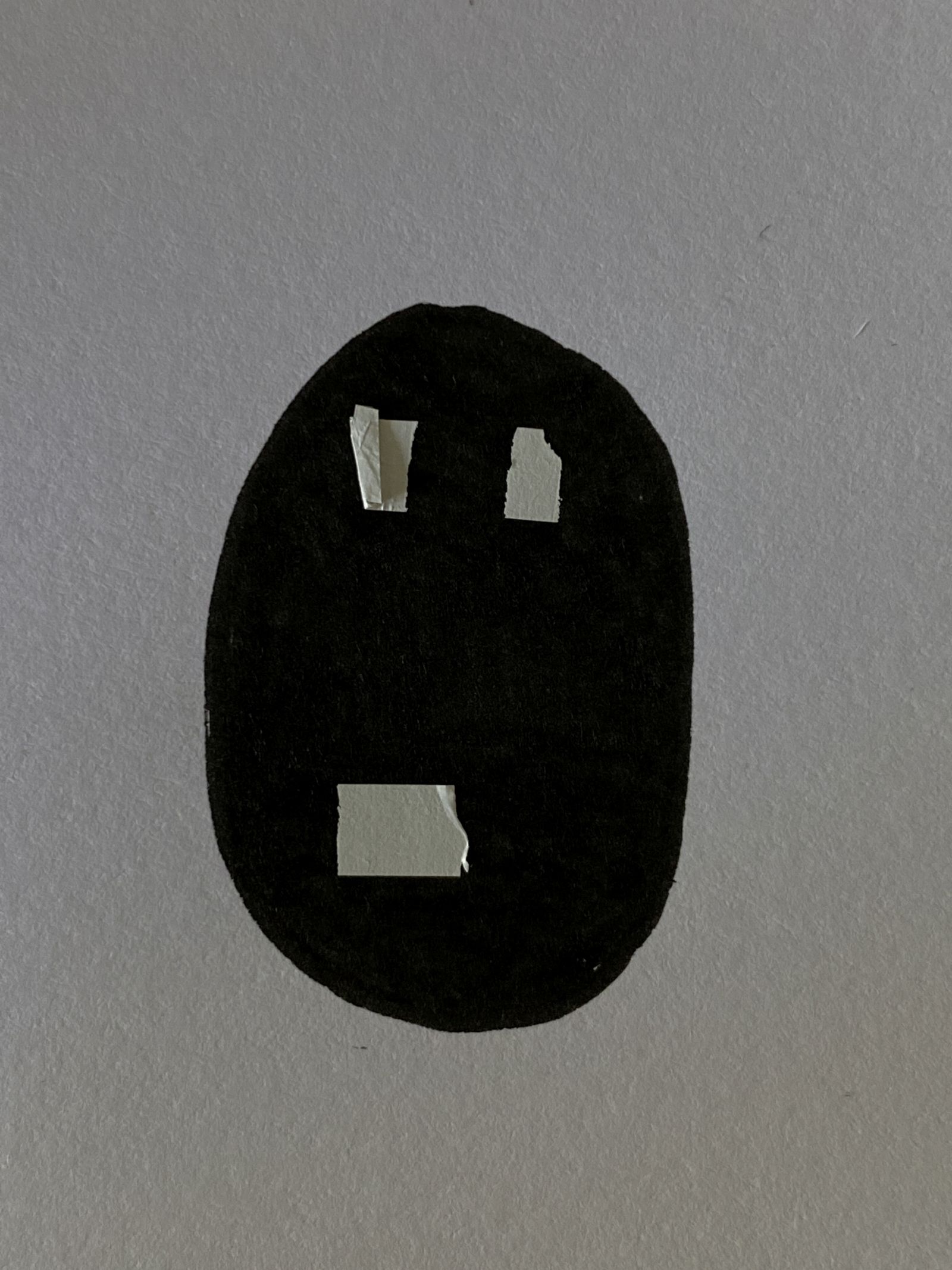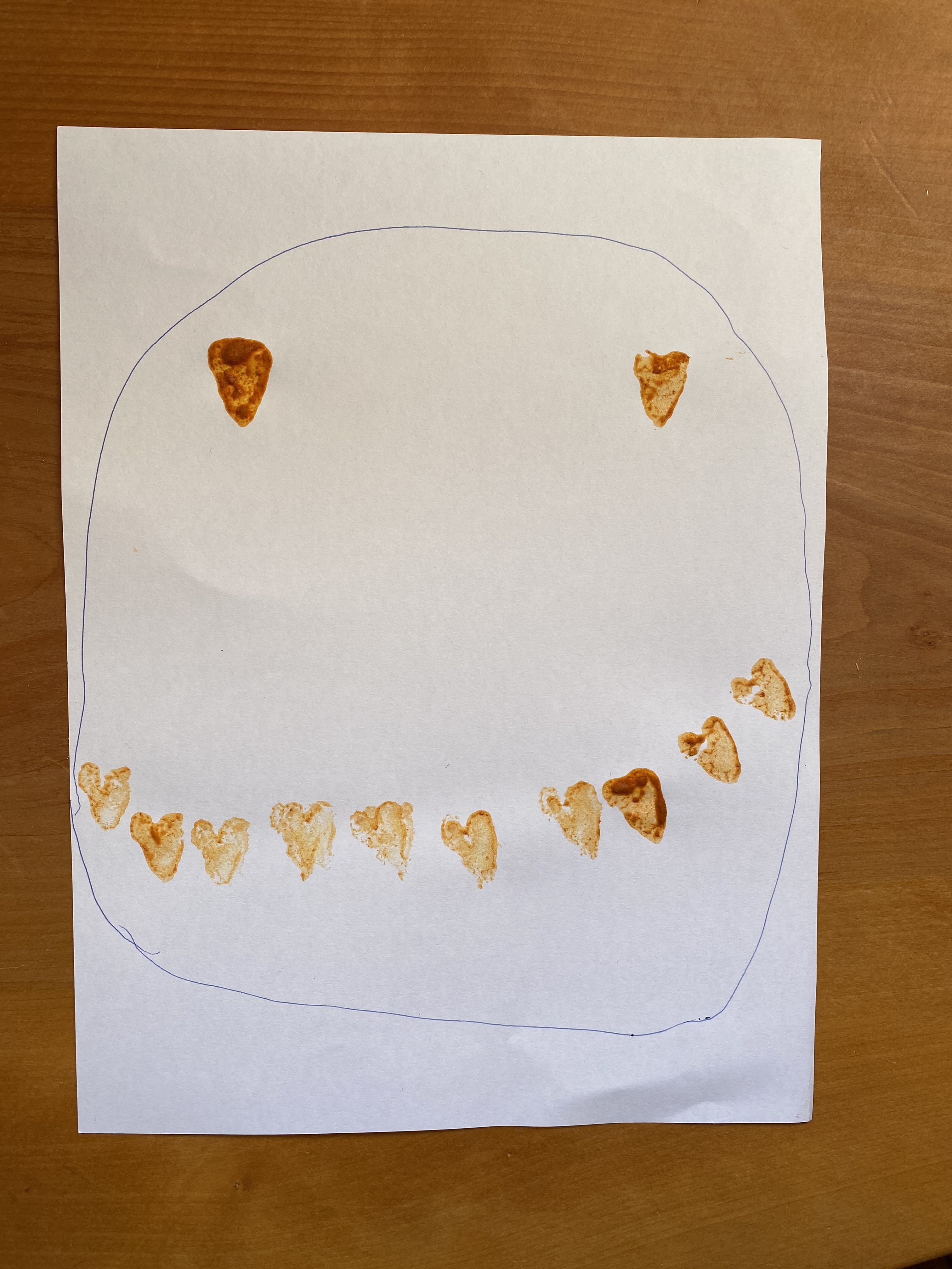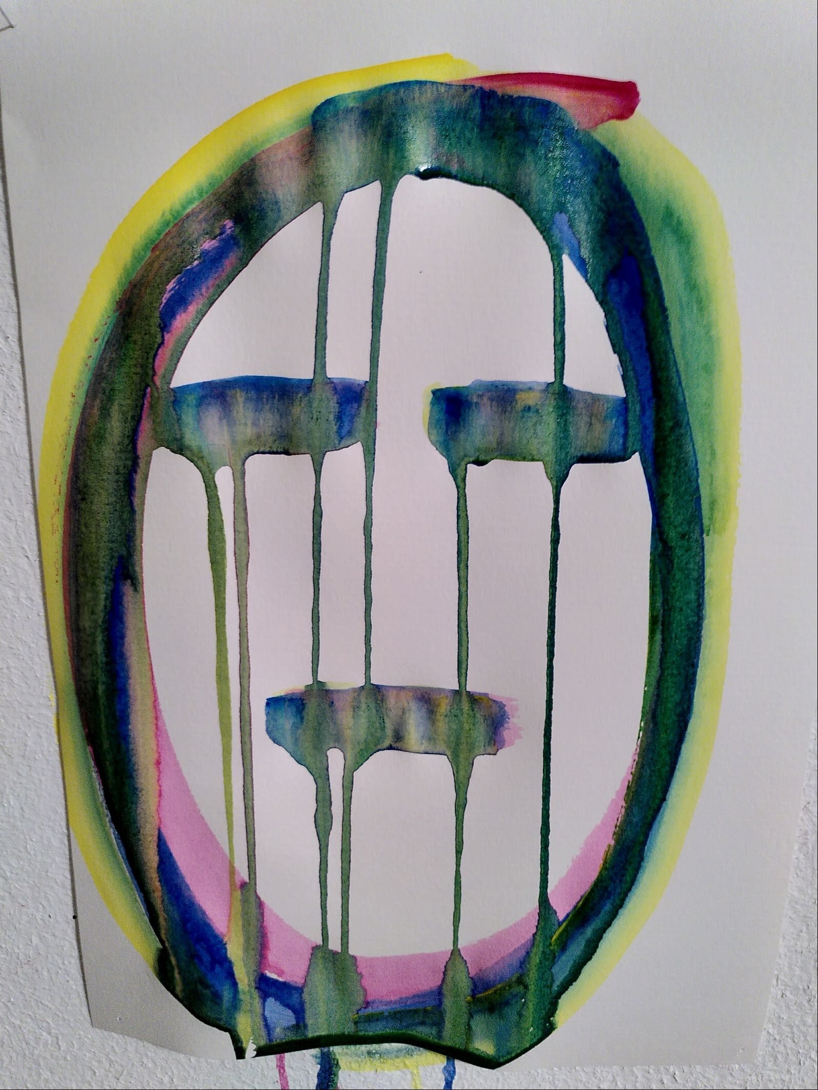Zeichne ein Oval im Hochformat und ergänze es mit Formen so dass ein bizarres Gesicht zu erkennen oder zu erahnen ist. Das Bild kann gezeichnet, geklebt, gemalt, gelegt, gestempelt oder ... werden.