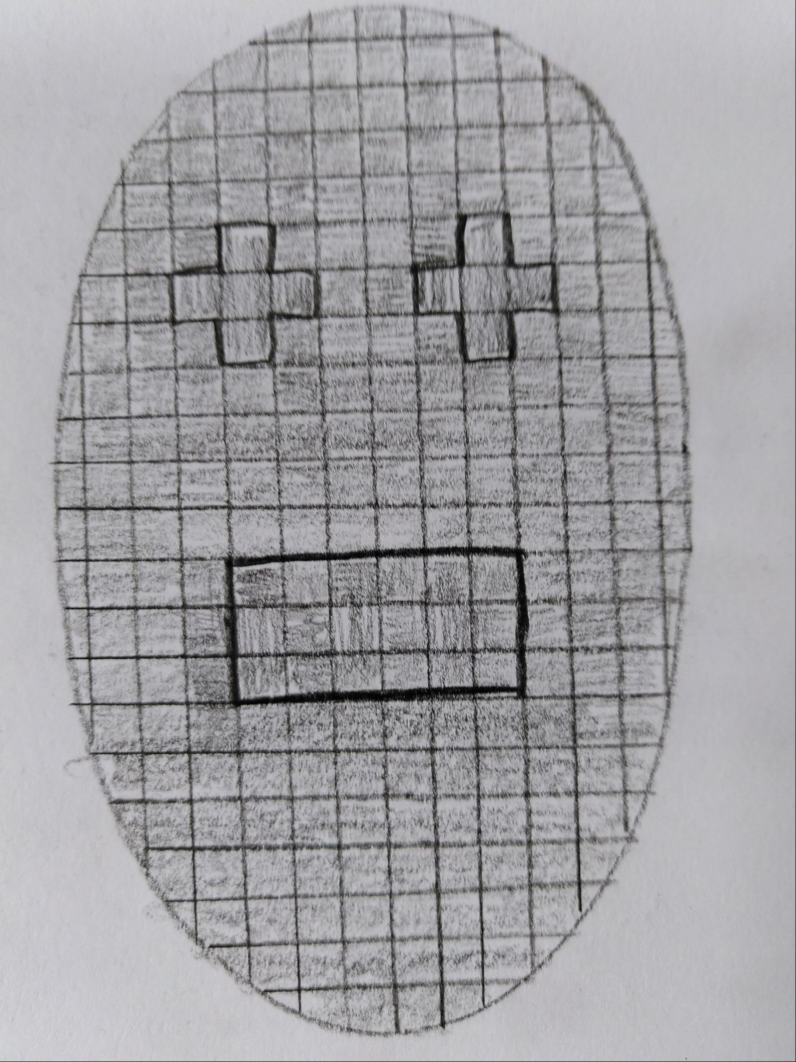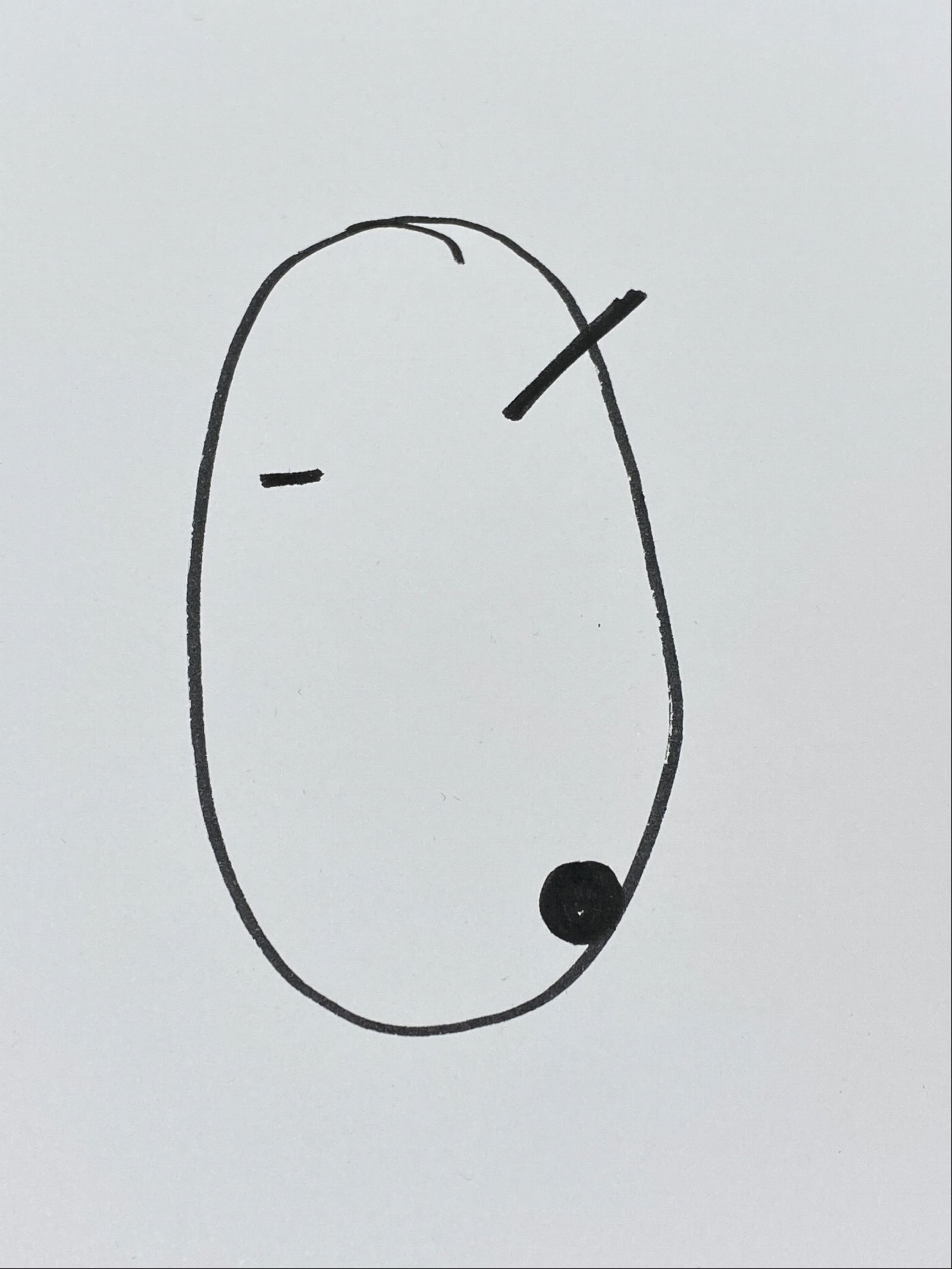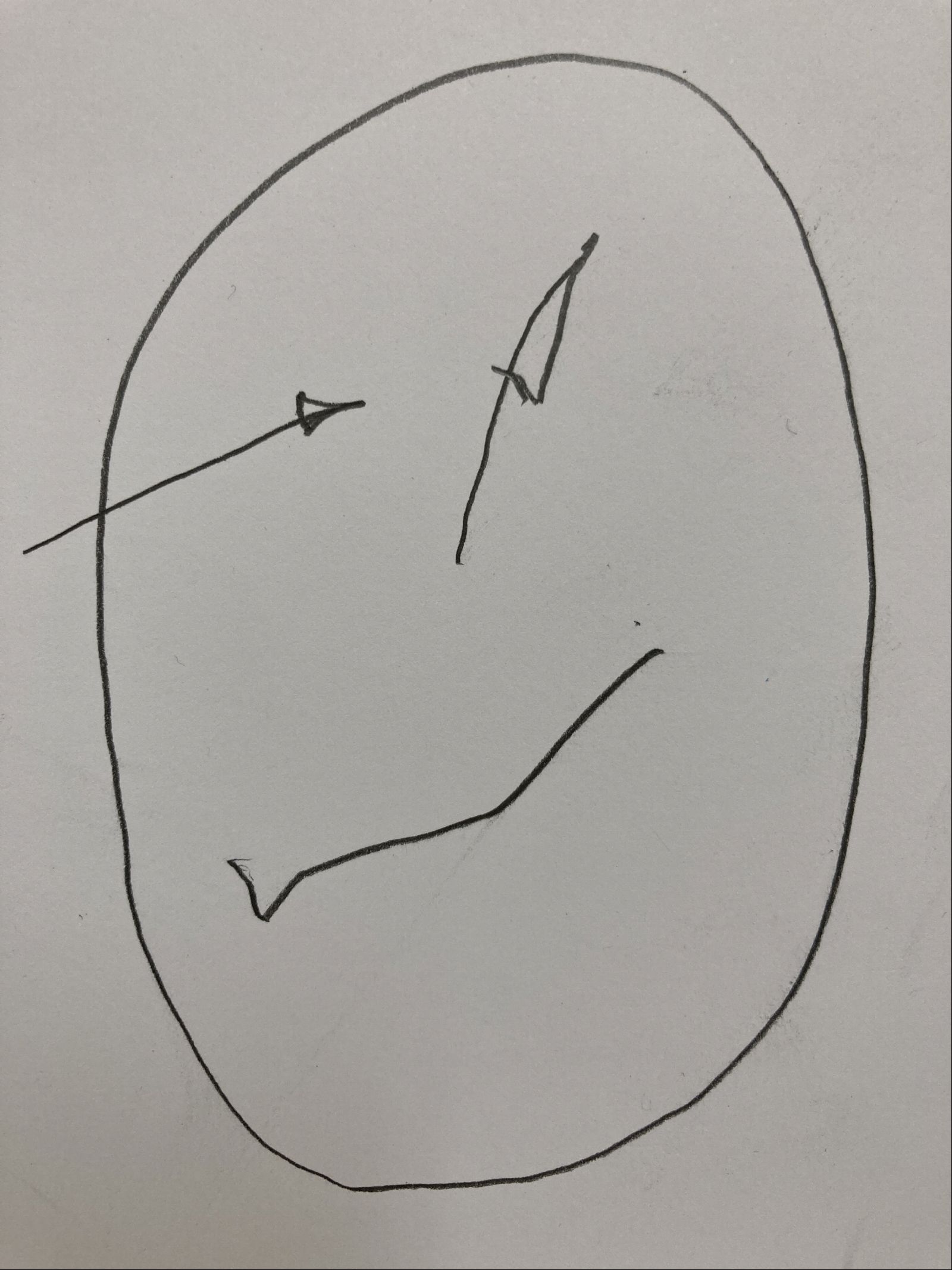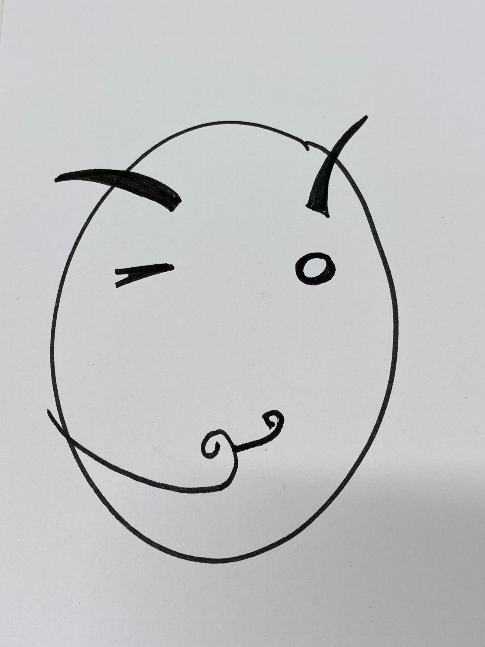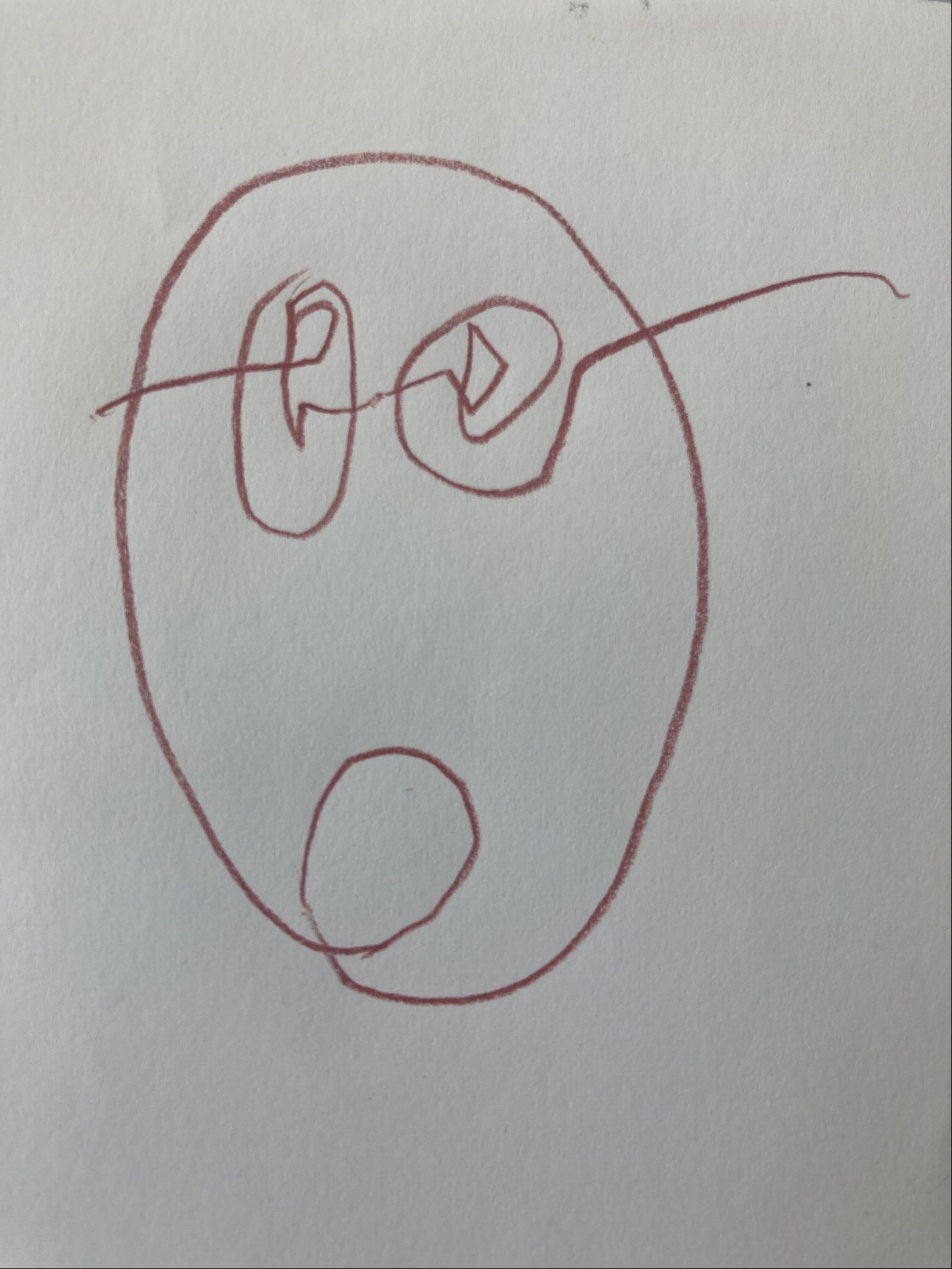 Zeichne ein Oval im Hochformat und ergänze es mit Formen so dass ein bizarres Gesicht zu erkennen oder zu erahnen ist. Das Bild kann gezeichnet, geklebt, gemalt, gelegt, gestempelt oder ... werden.