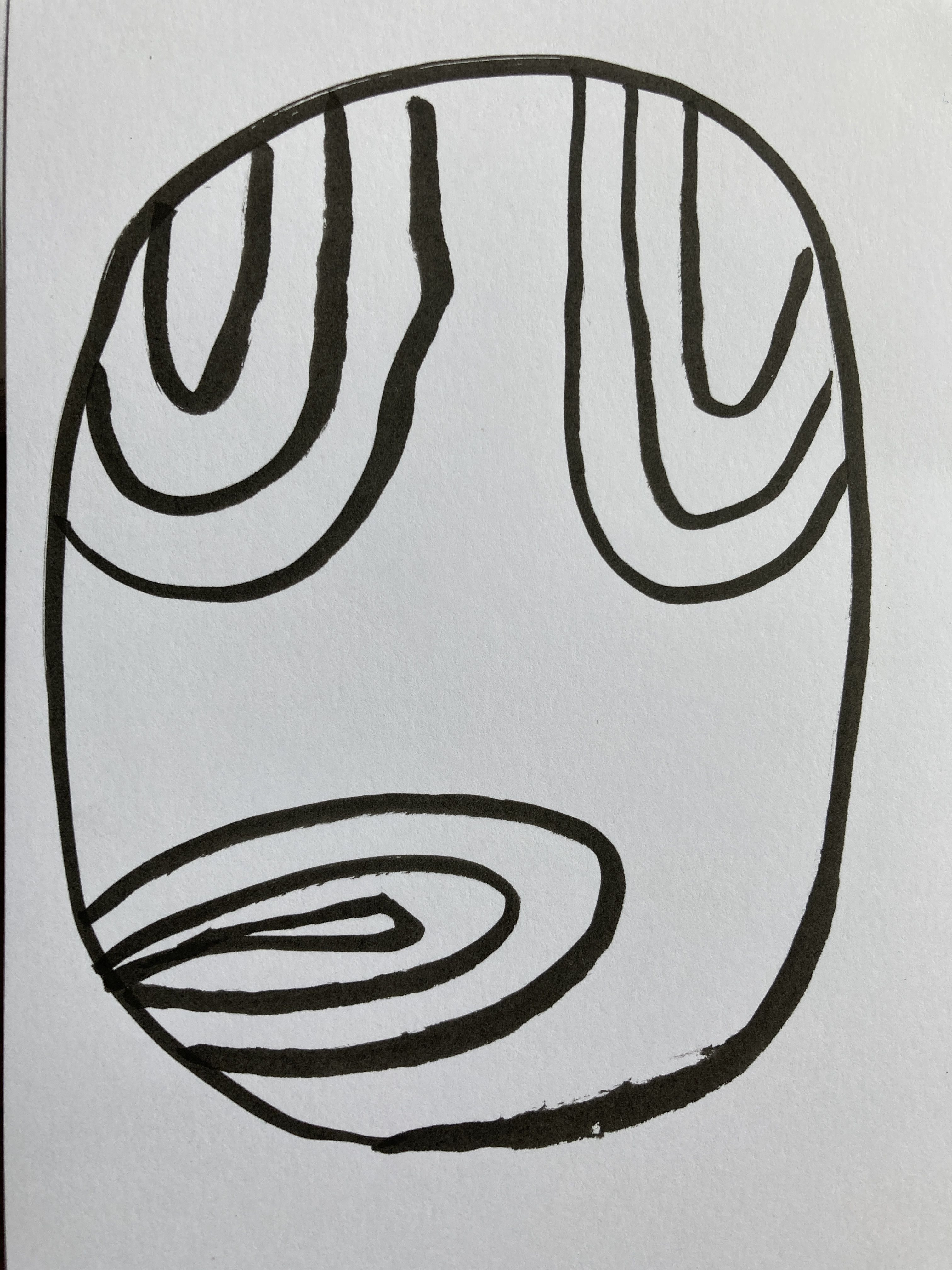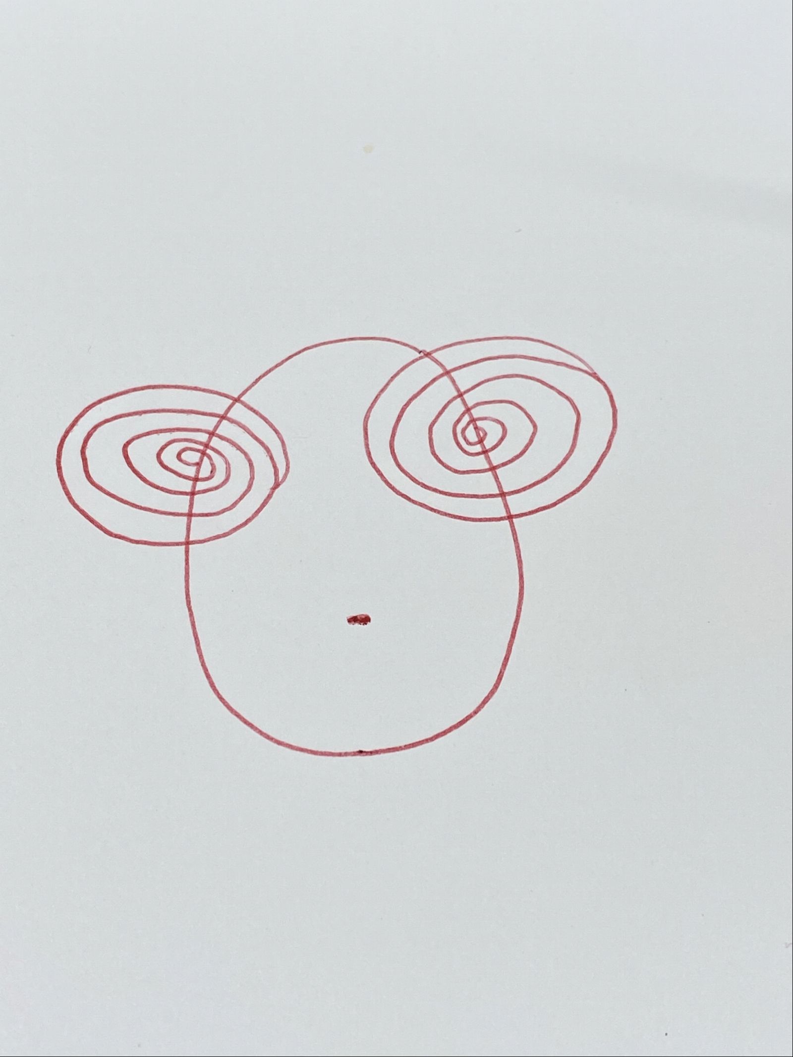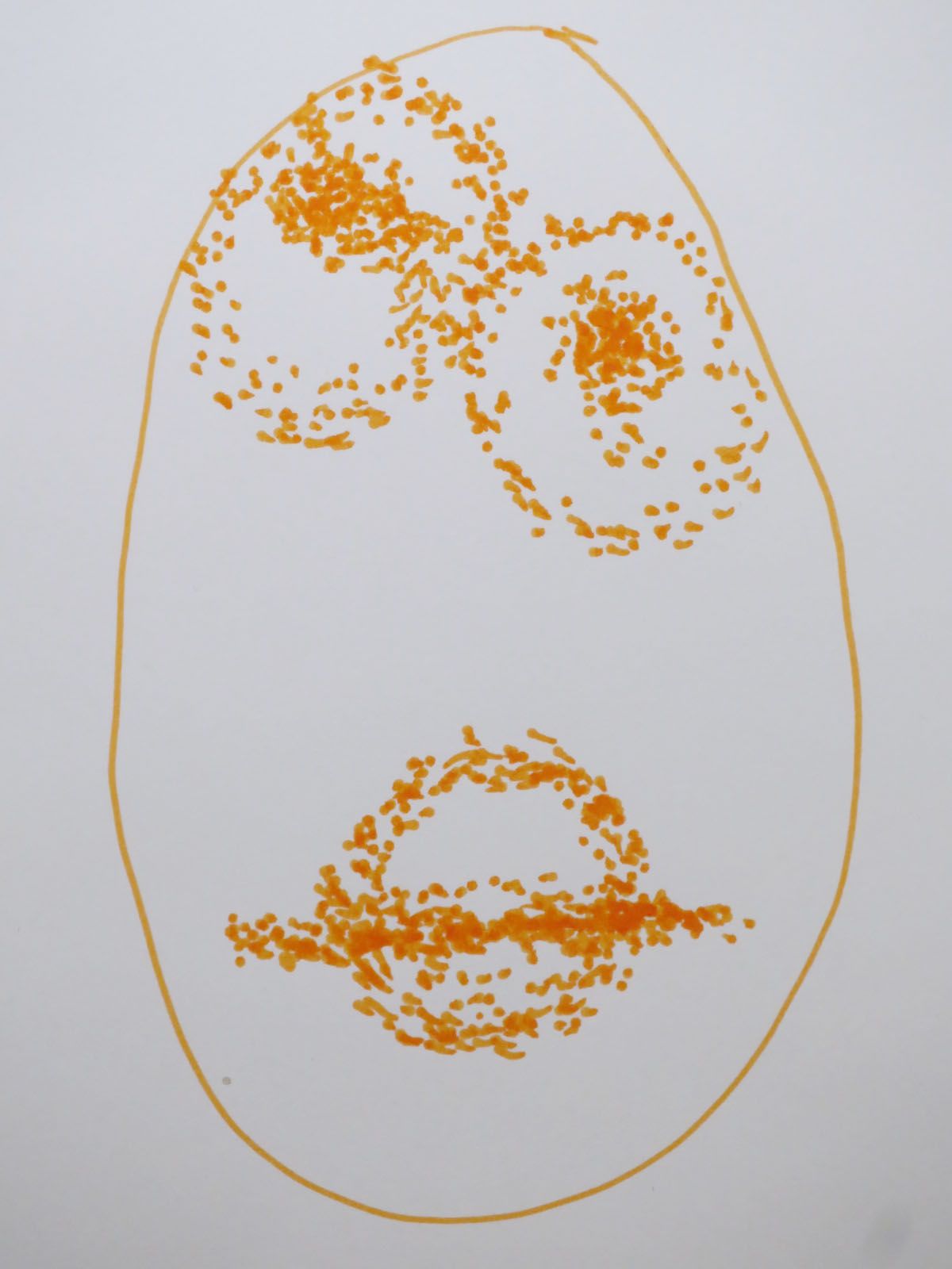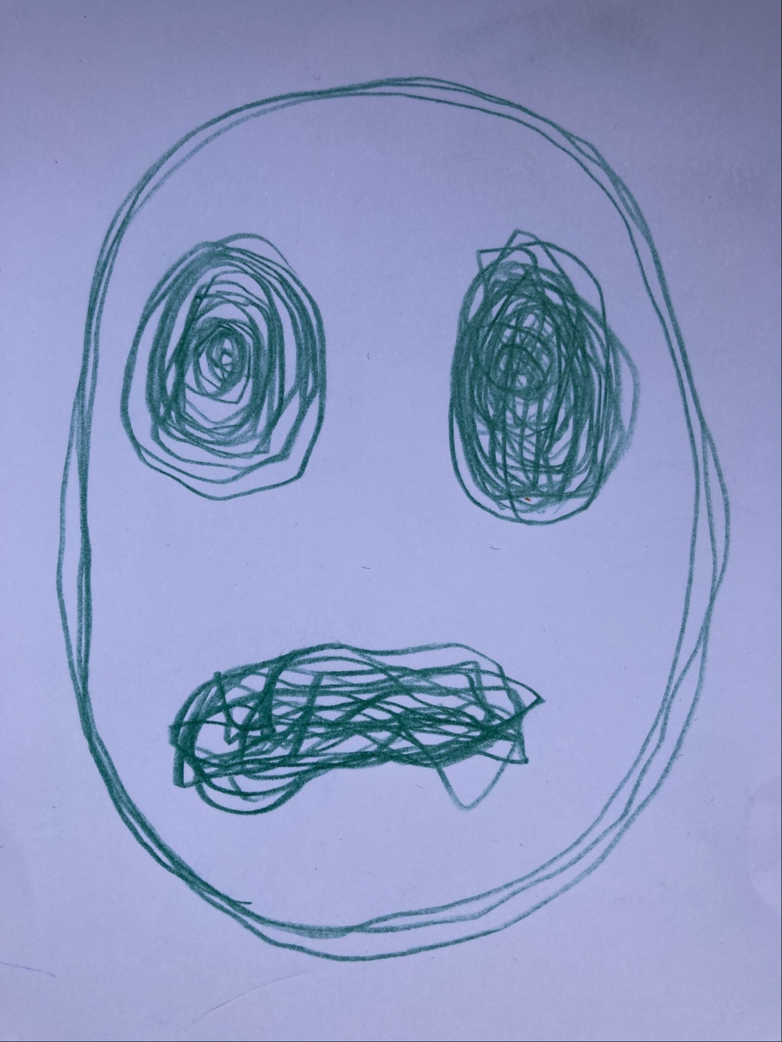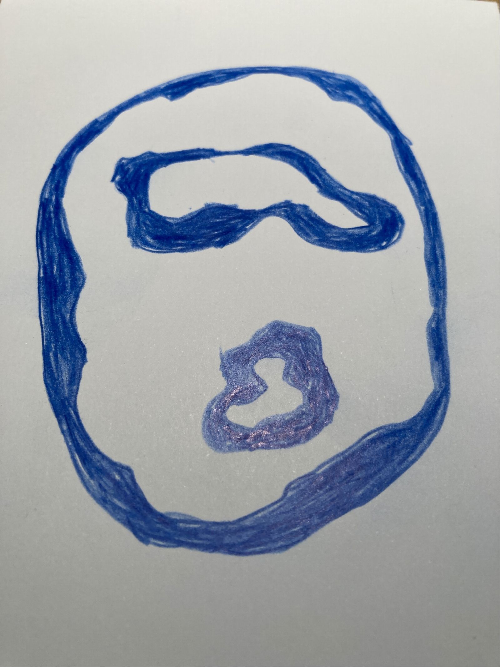 Zeichne ein Oval im Hochformat und ergänze es mit Formen so dass ein bizarres Gesicht zu erkennen oder zu erahnen ist. Das Bild kann gezeichnet, geklebt, gemalt, gelegt, gestempelt oder ... werden.