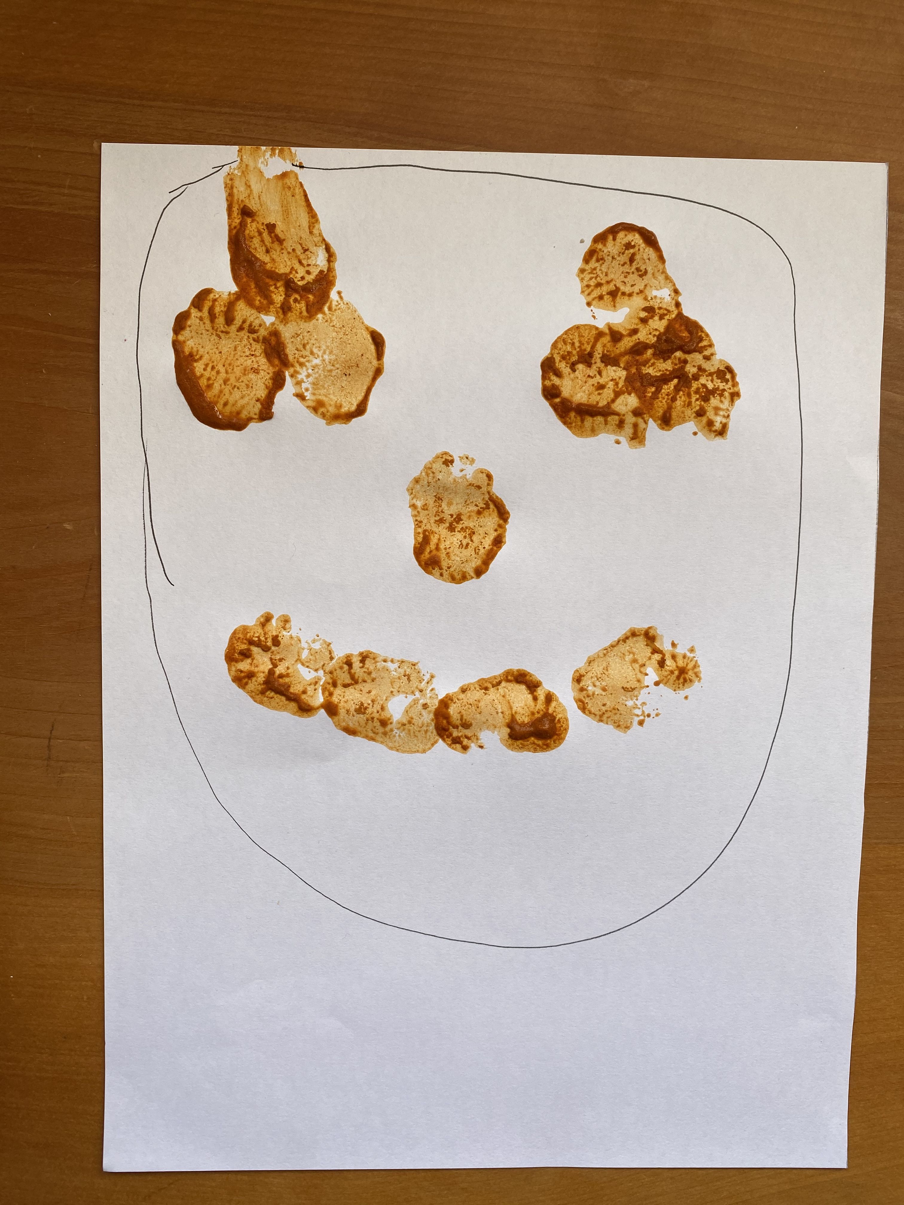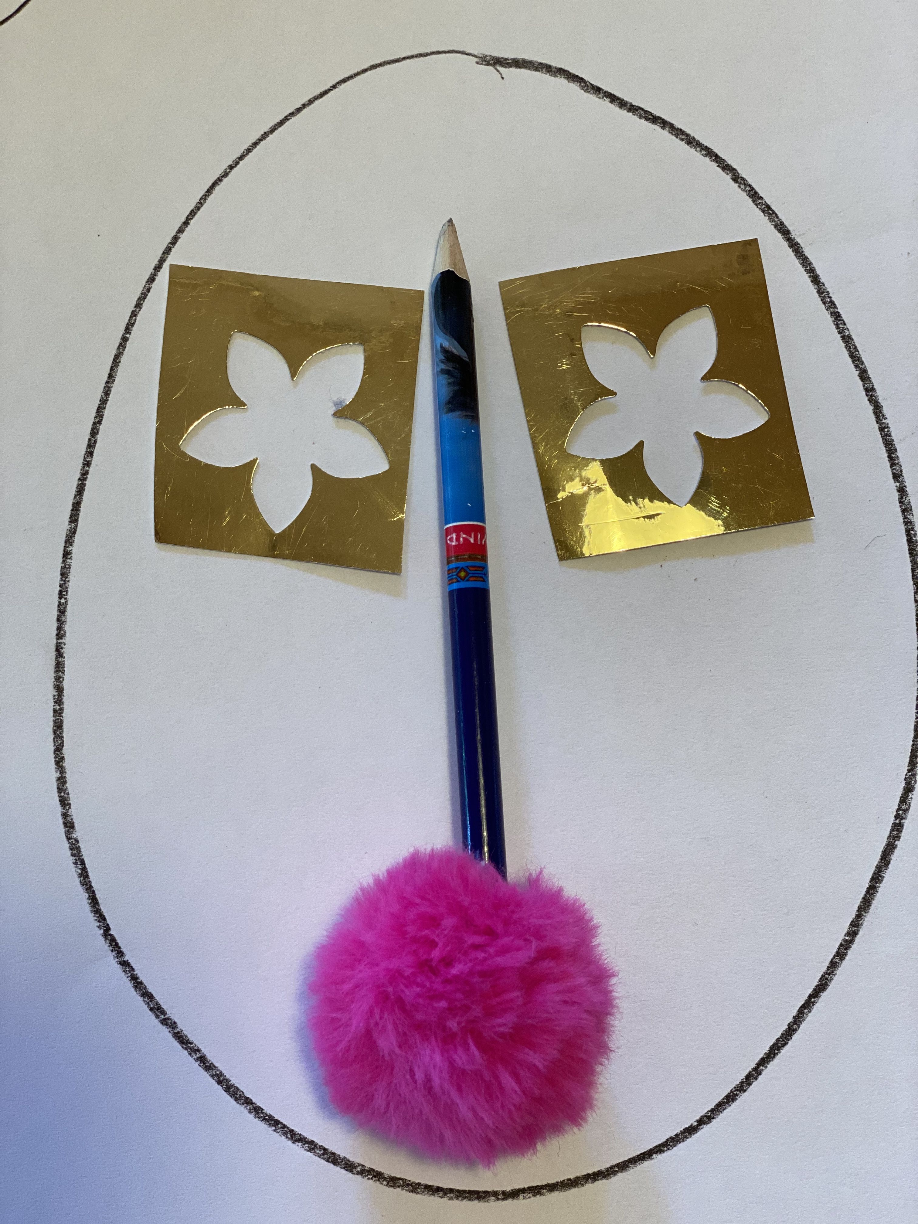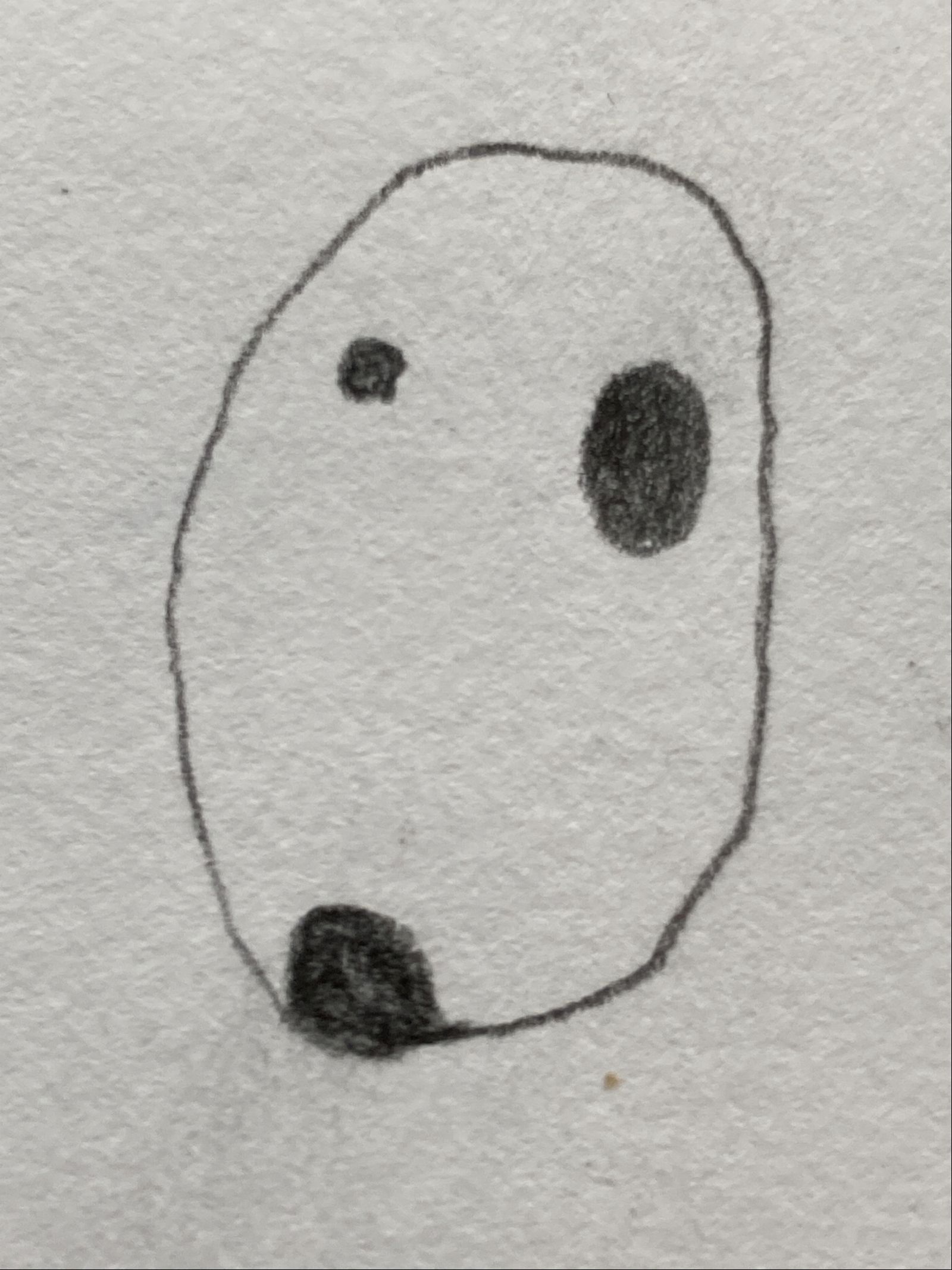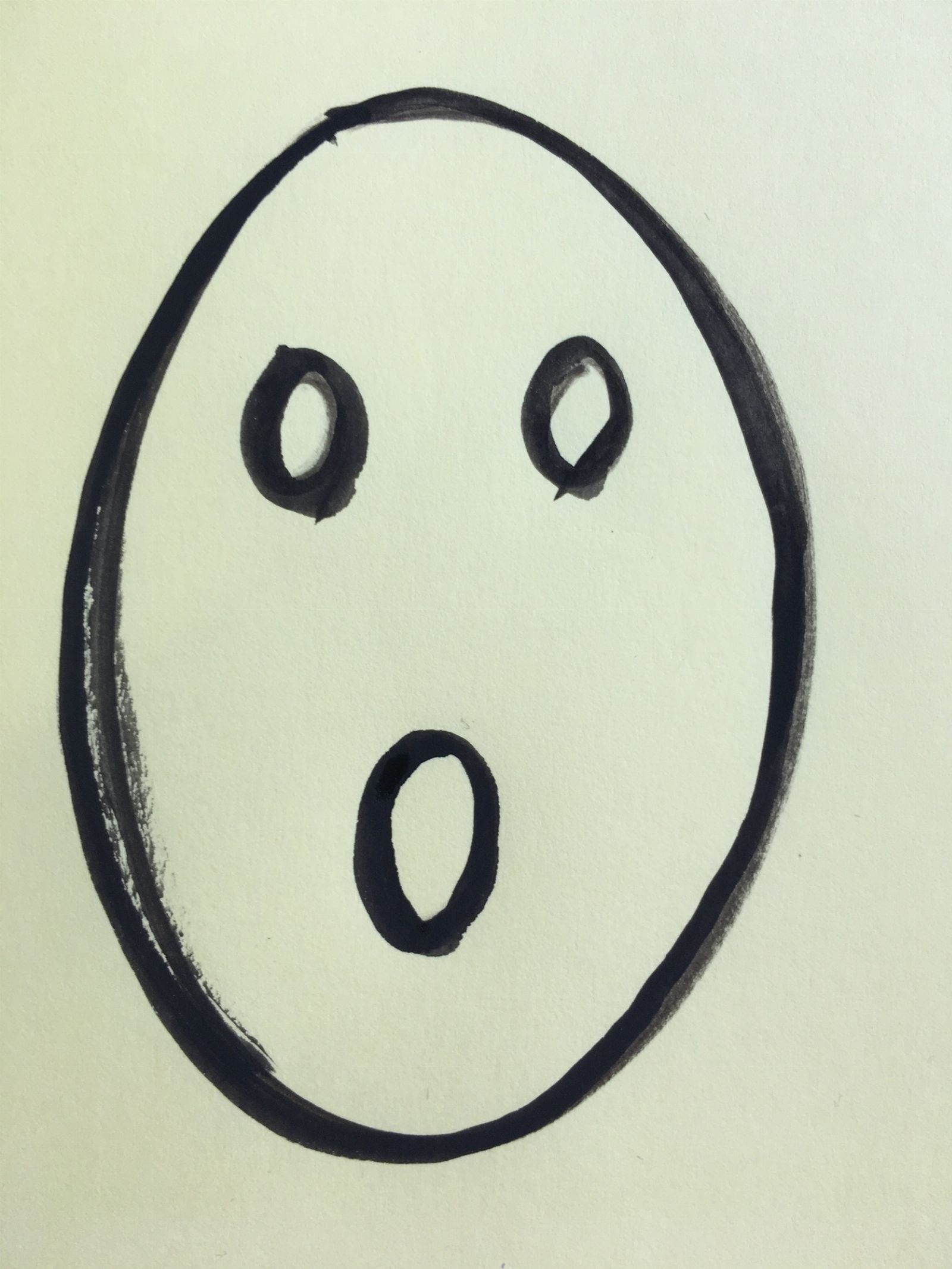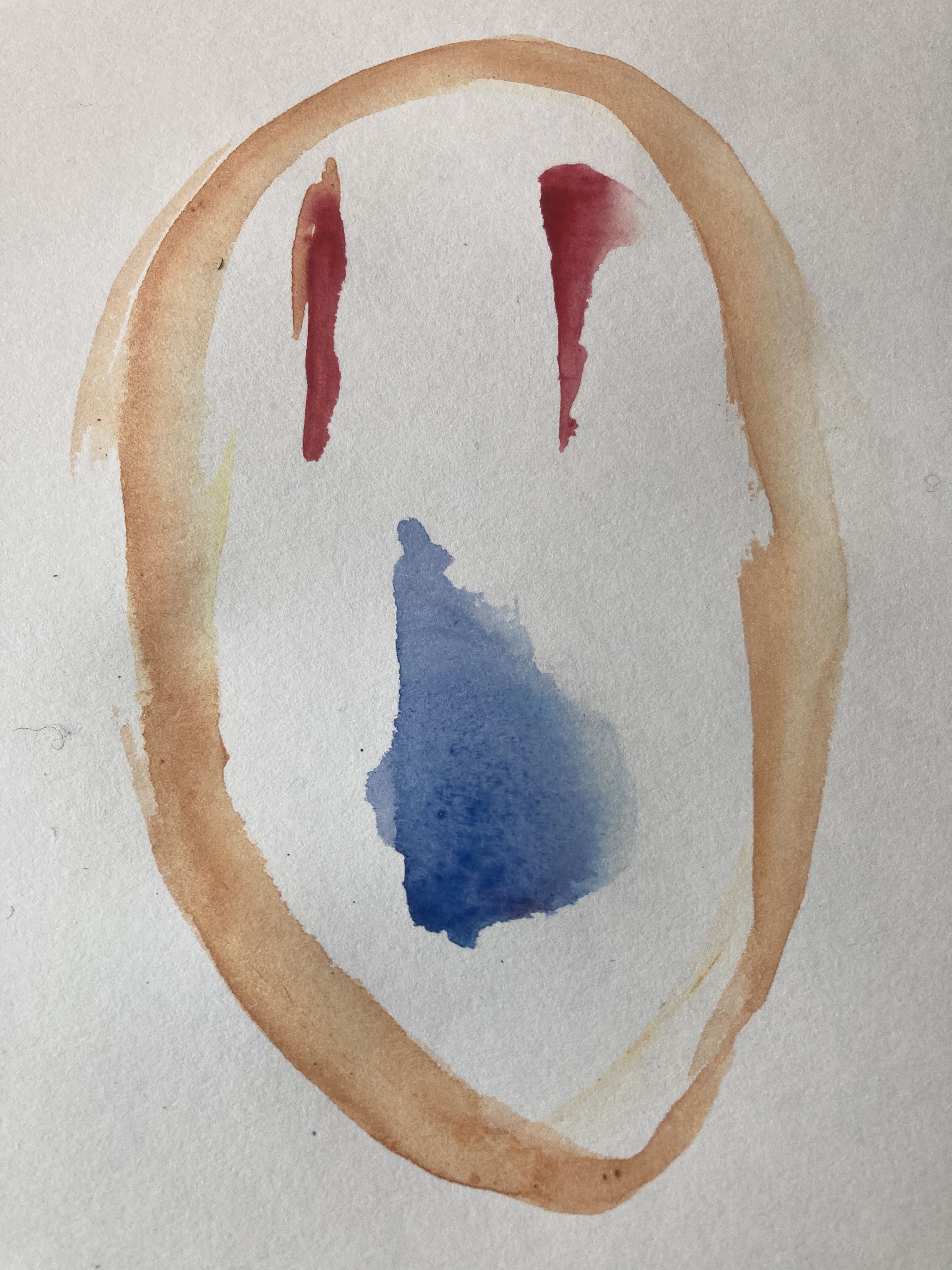 Zeichne ein Oval im Hochformat und ergänze es mit Formen so dass ein bizarres Gesicht zu erkennen oder zu erahnen ist. Das Bild kann gezeichnet, geklebt, gemalt, gelegt, gestempelt oder ... werden.