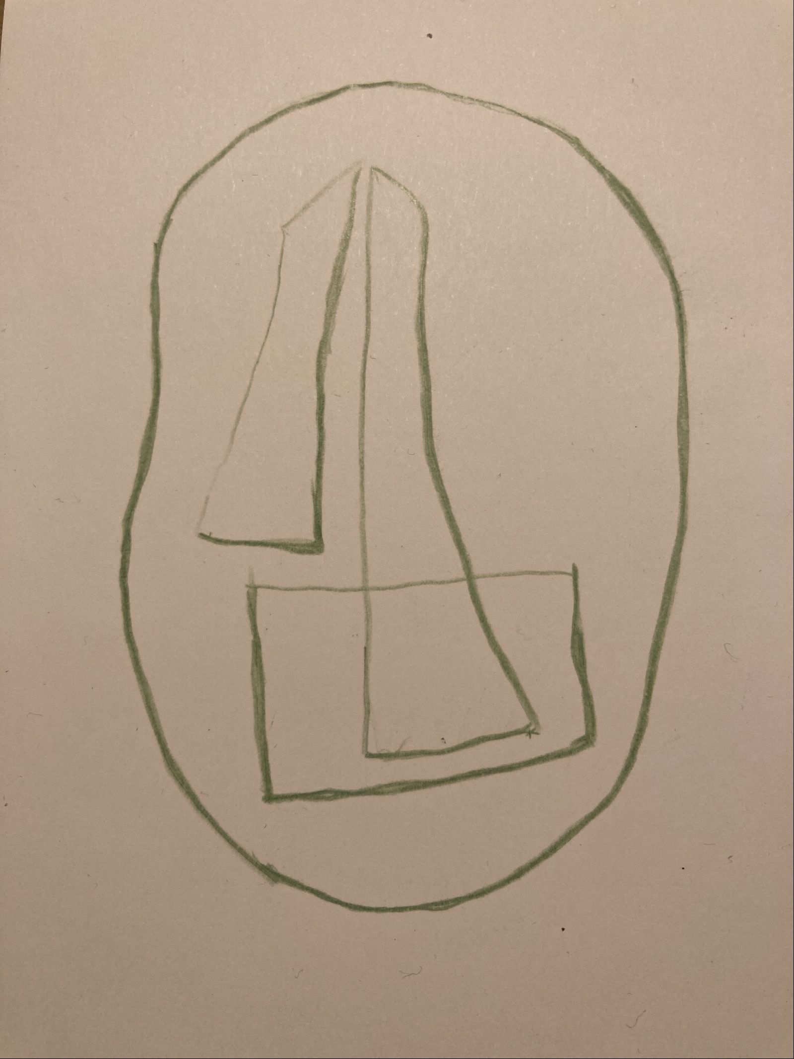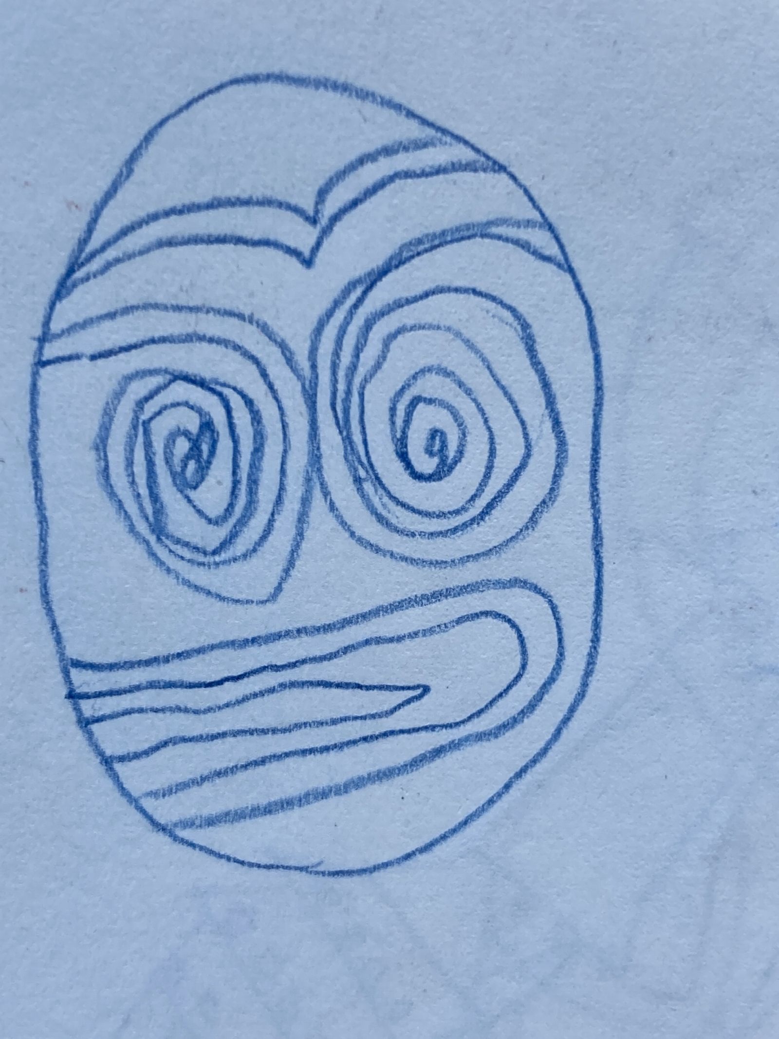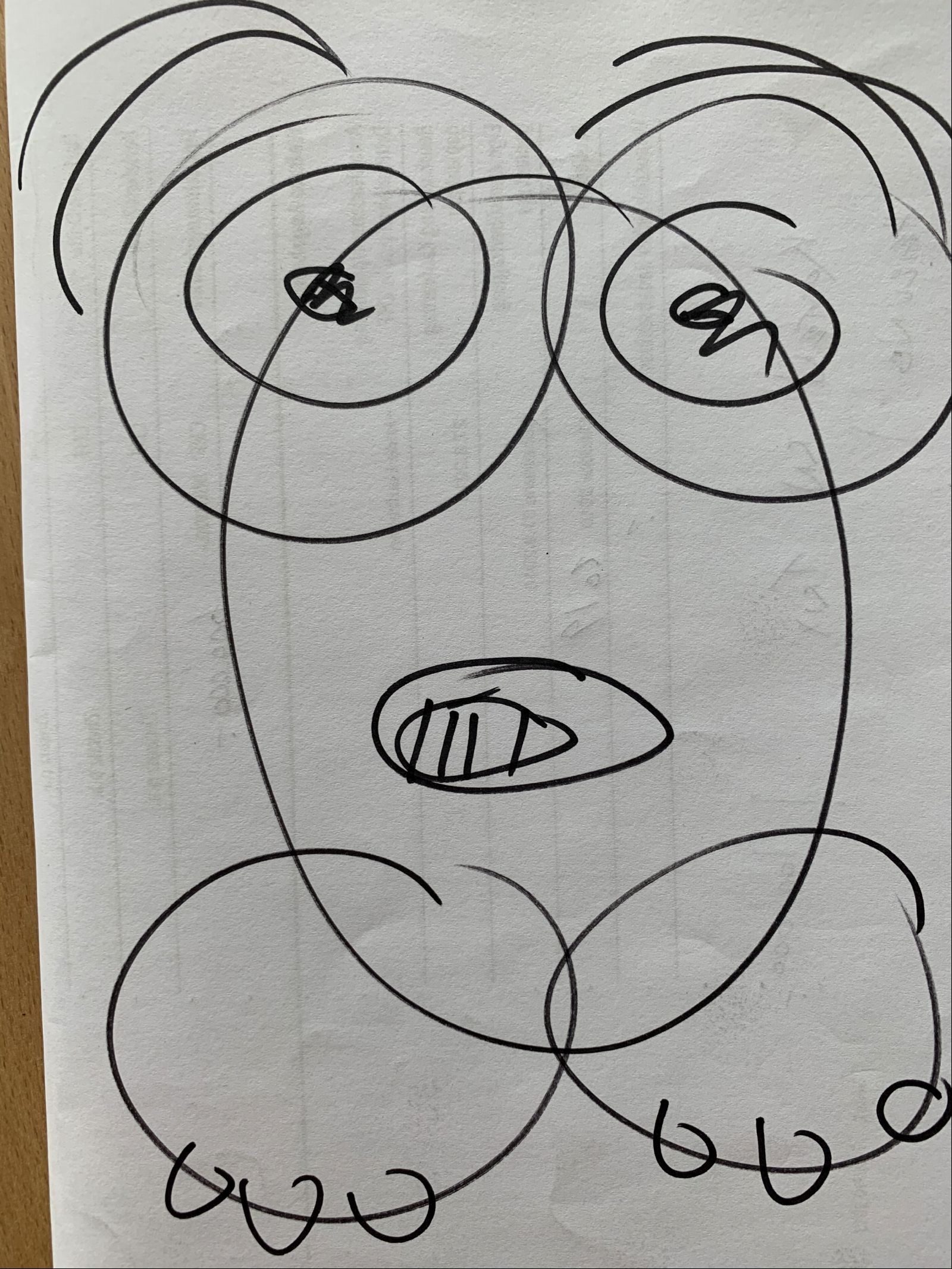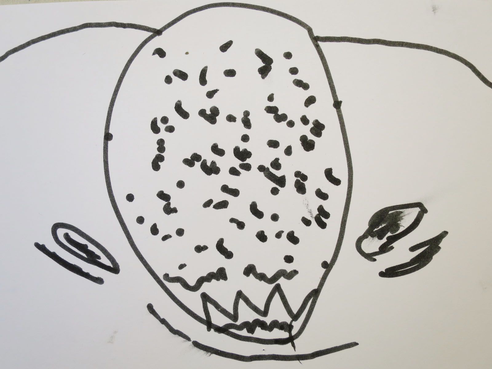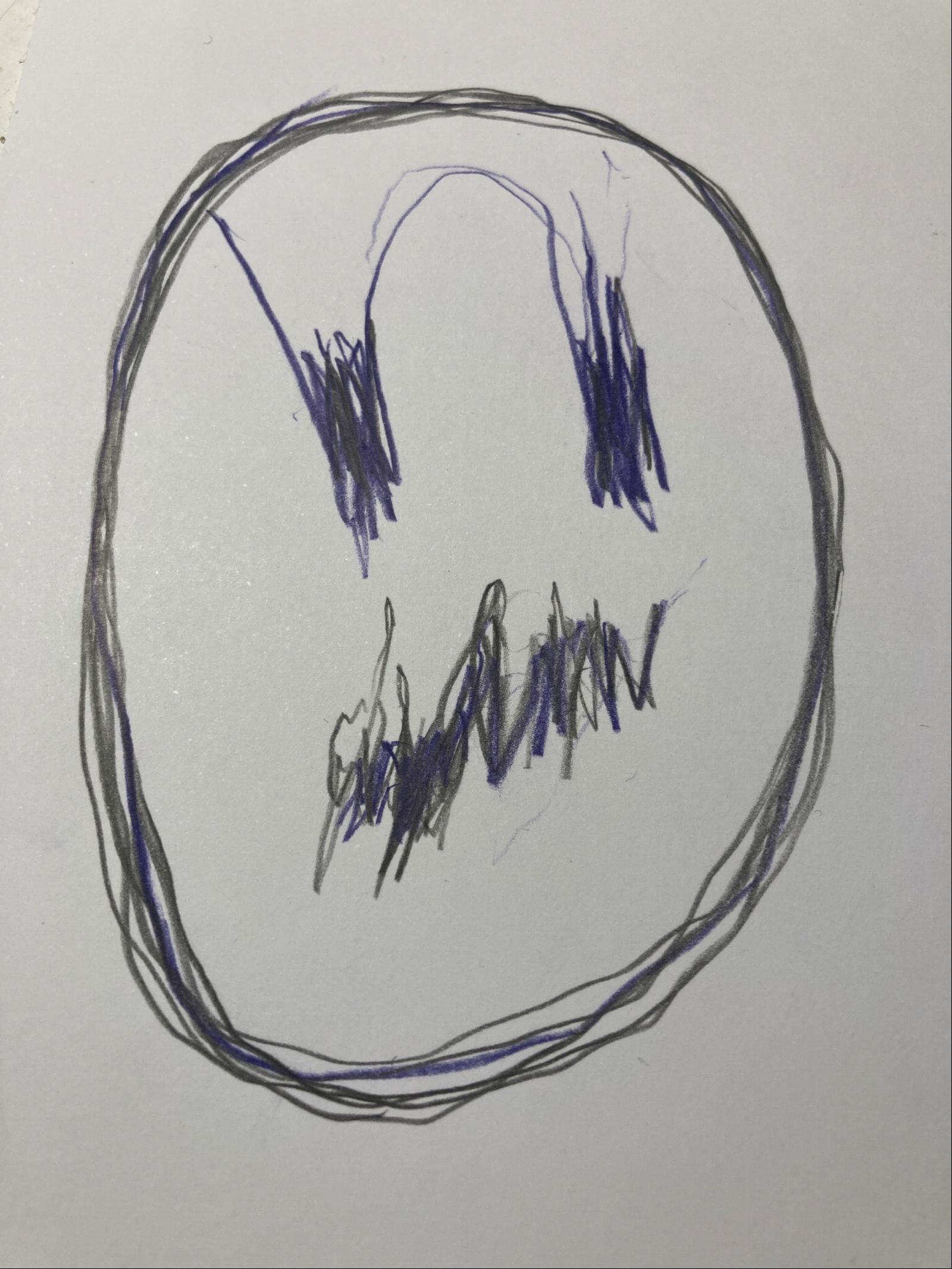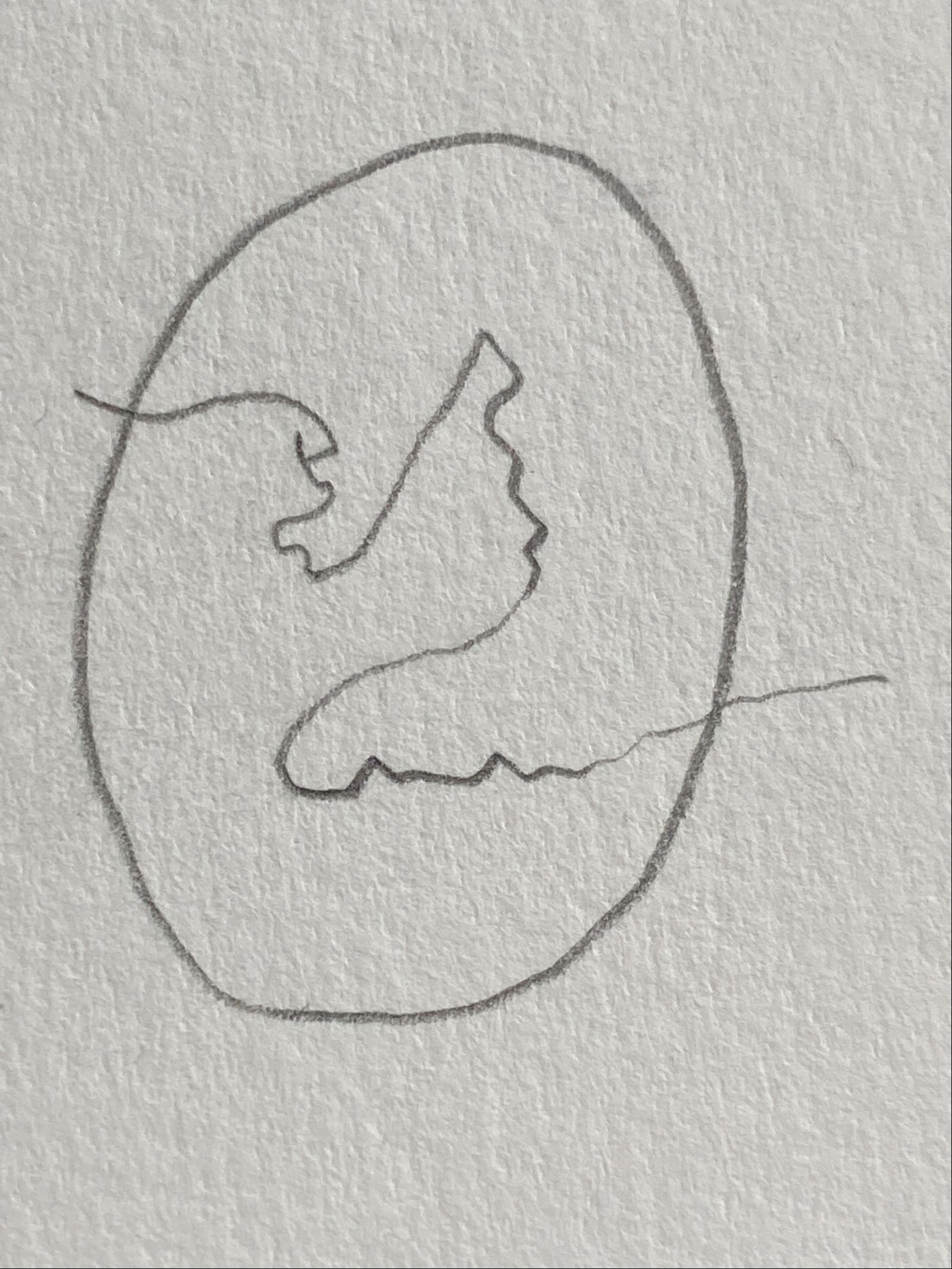 Zeichne ein Oval im Hochformat und ergänze es mit Formen so dass ein bizarres Gesicht zu erkennen oder zu erahnen ist. Das Bild kann gezeichnet, geklebt, gemalt, gelegt, gestempelt oder ... werden.