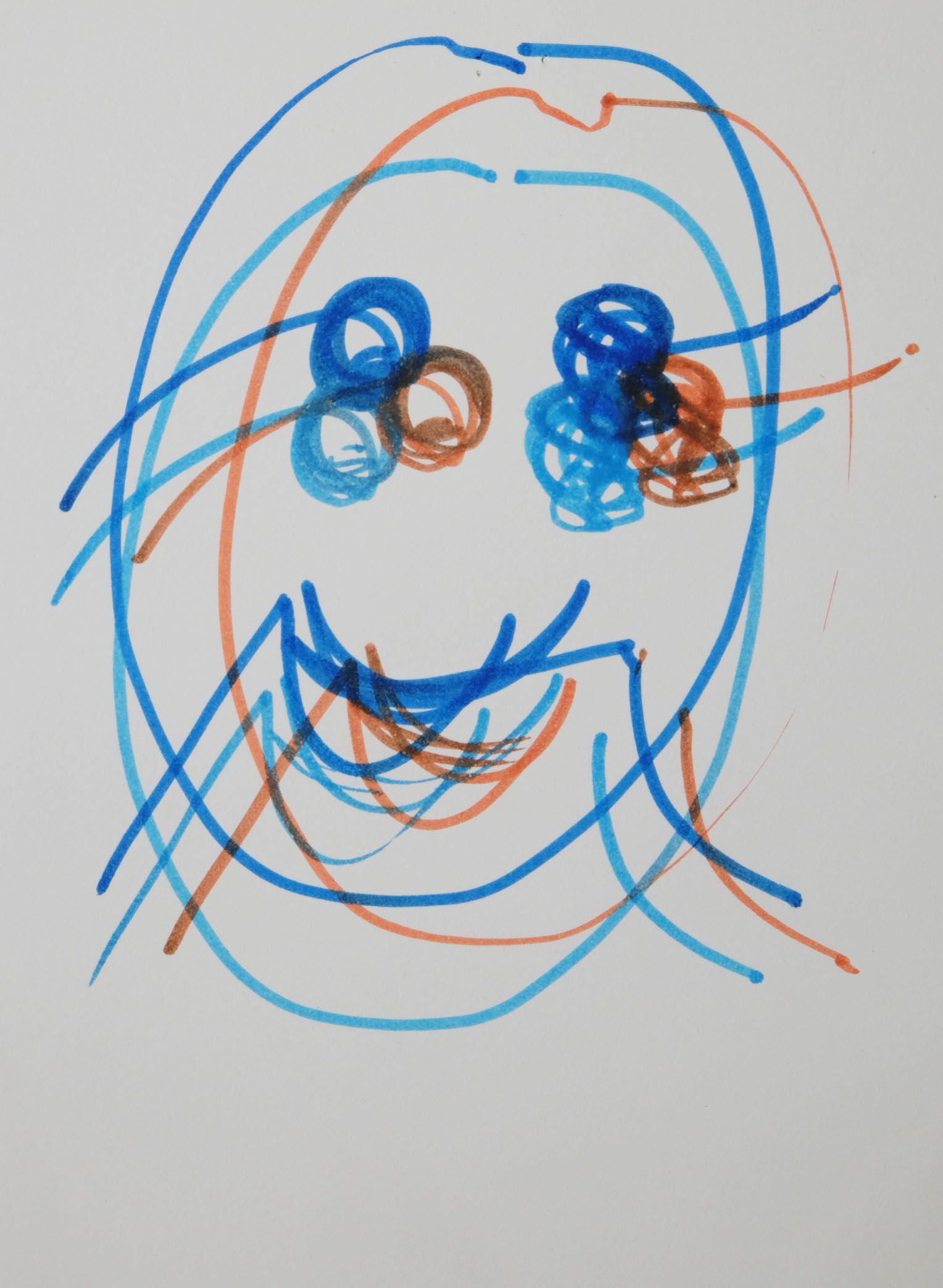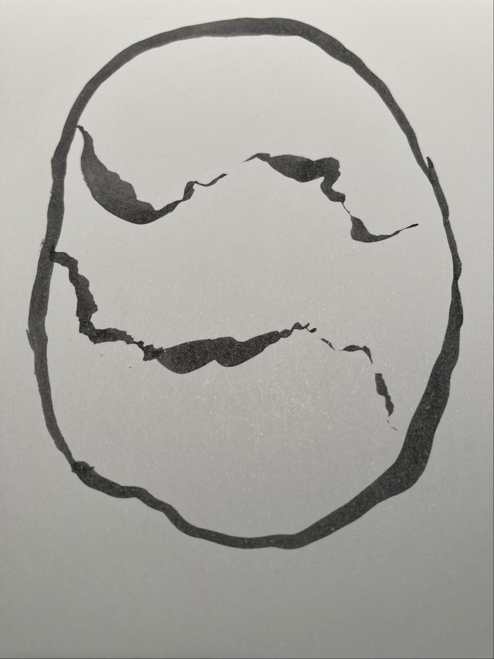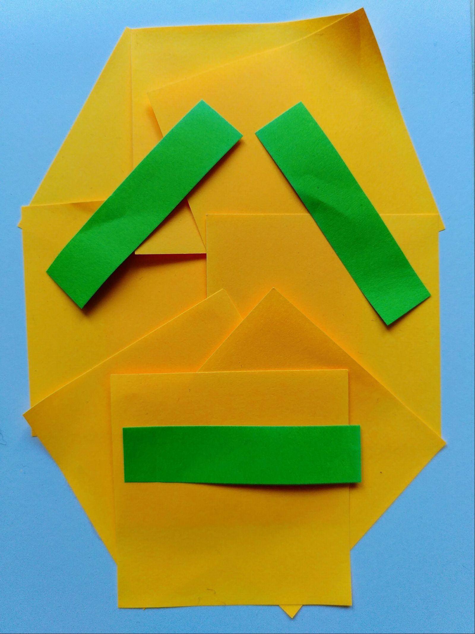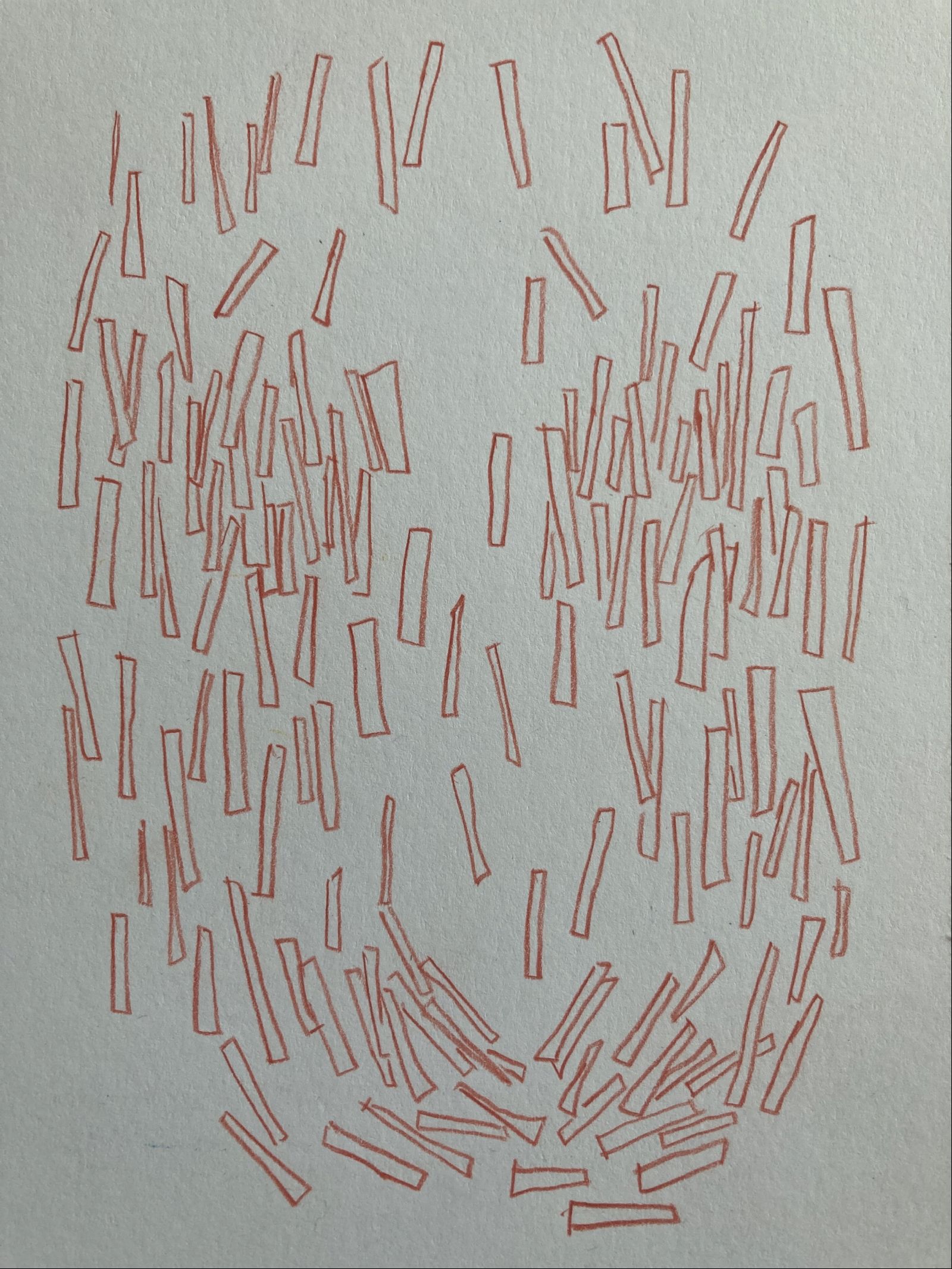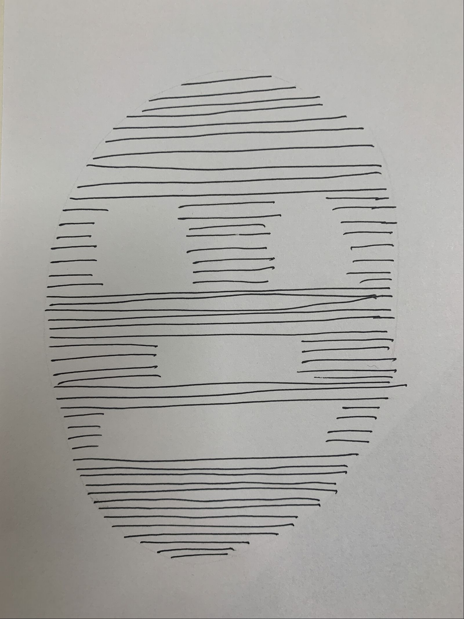 Zeichne ein Oval im Hochformat und ergänze es mit Formen so dass ein bizarres Gesicht zu erkennen oder zu erahnen ist. Das Bild kann gezeichnet, geklebt, gemalt, gelegt, gestempelt oder ... werden.