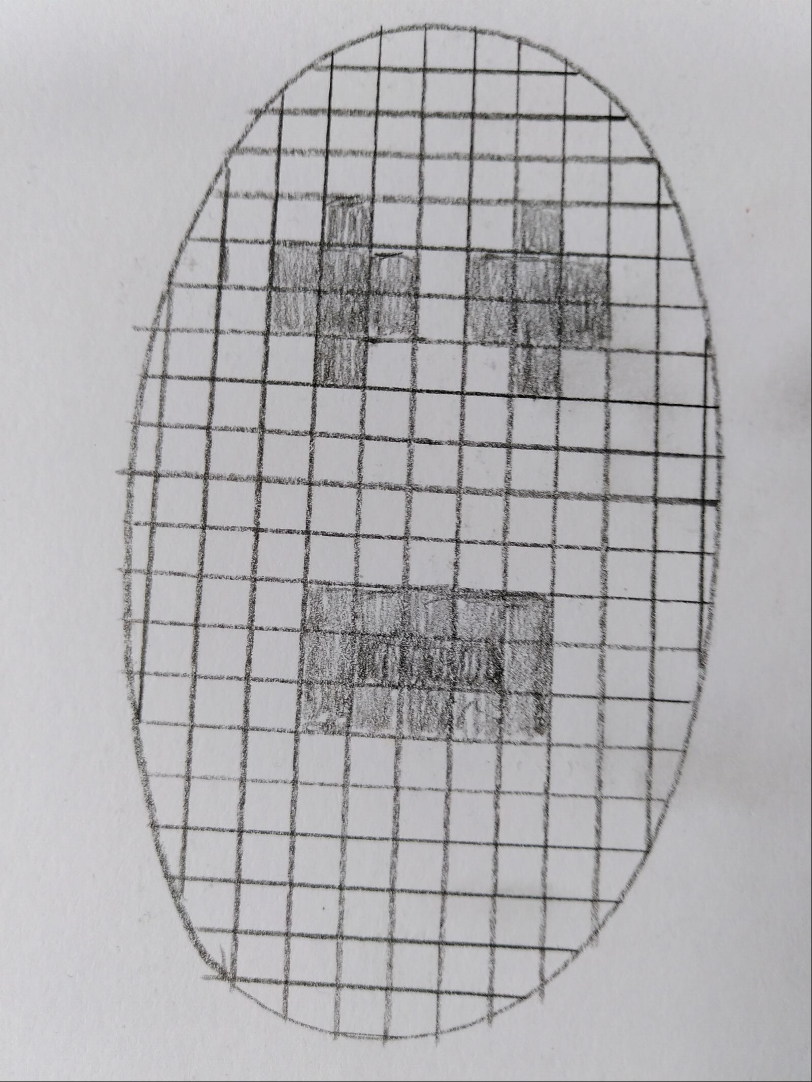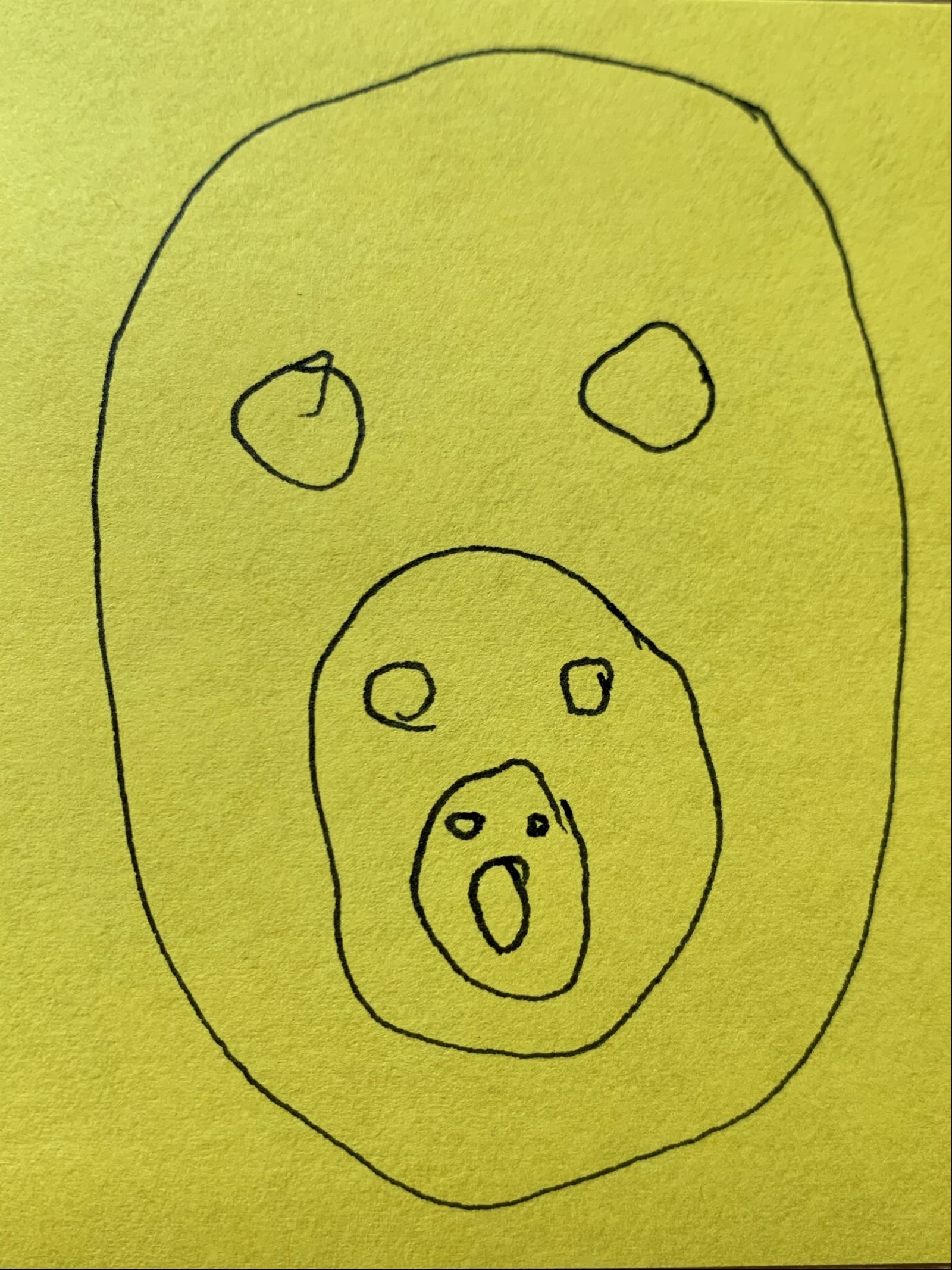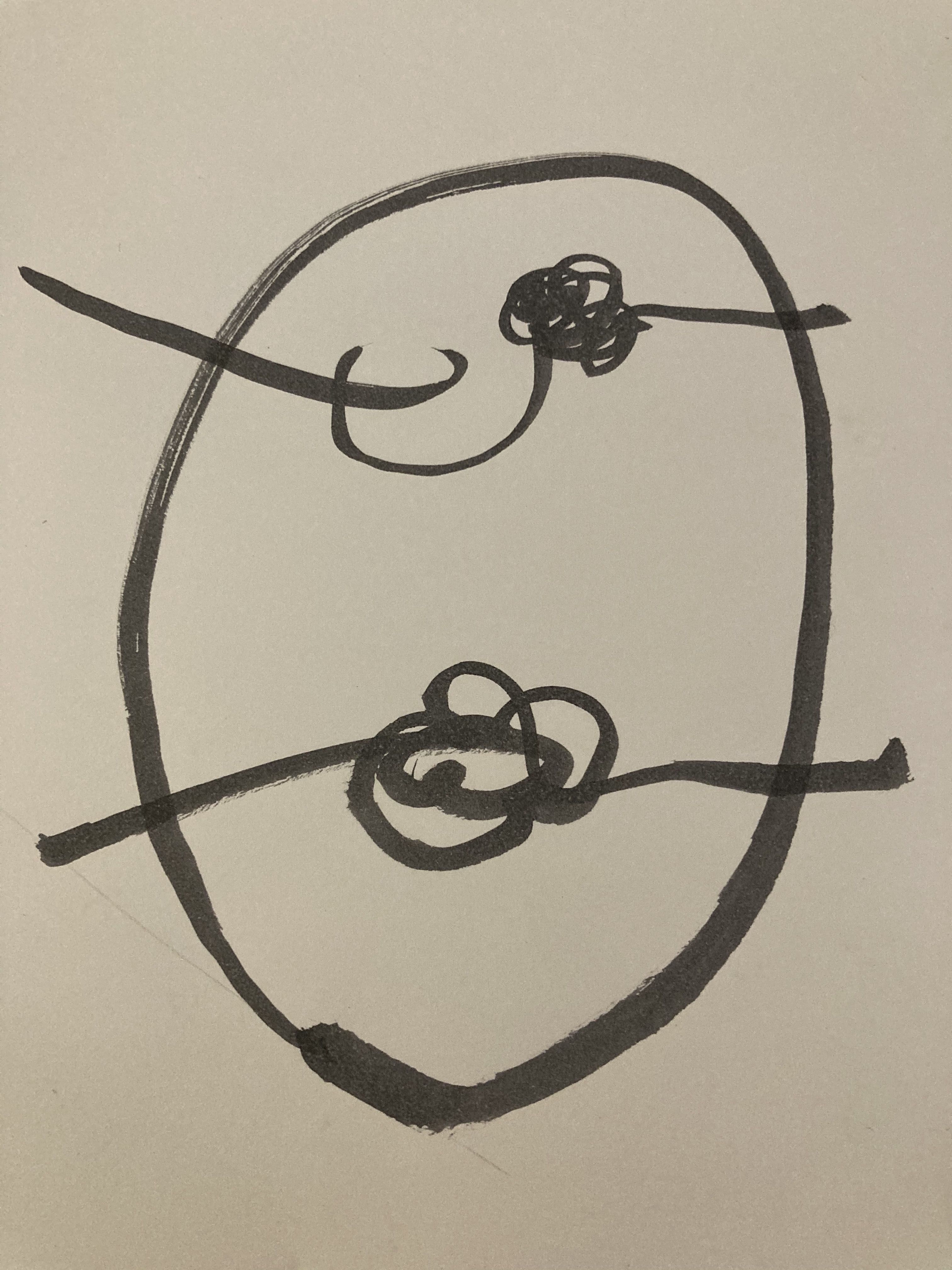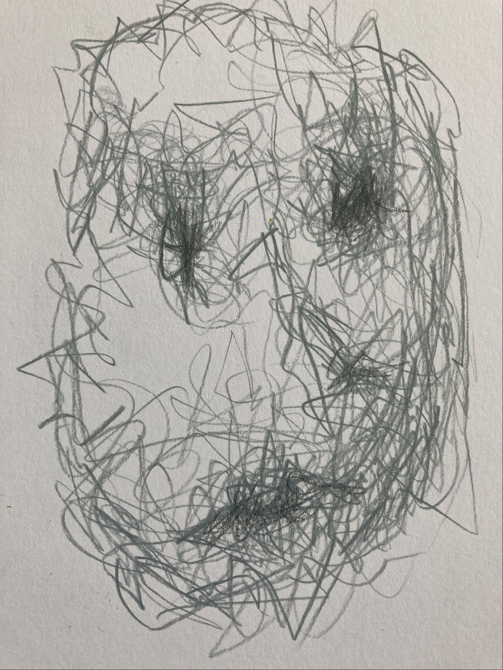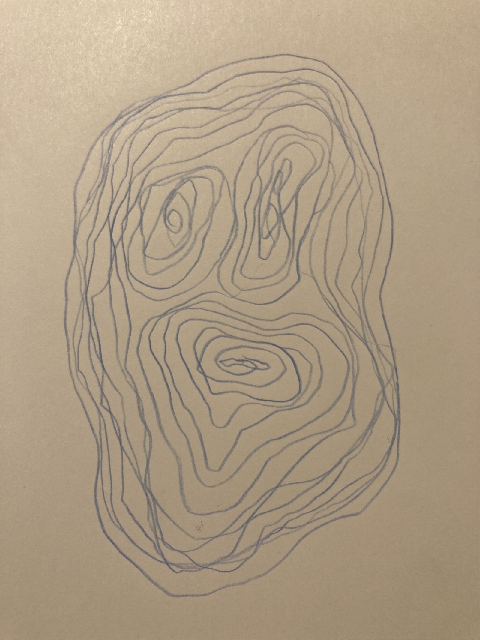 Zeichne ein Oval im Hochformat und ergänze es mit Formen so dass ein bizarres Gesicht zu erkennen oder zu erahnen ist. Das Bild kann gezeichnet, geklebt, gemalt, gelegt, gestempelt oder ... werden.