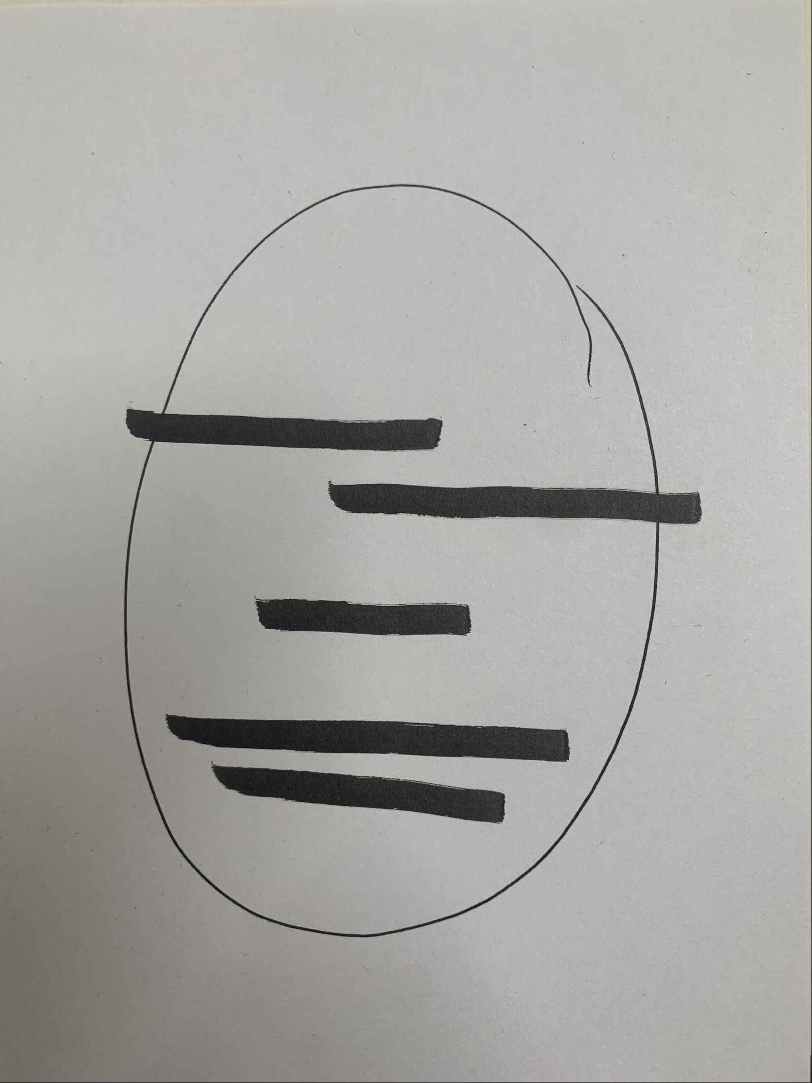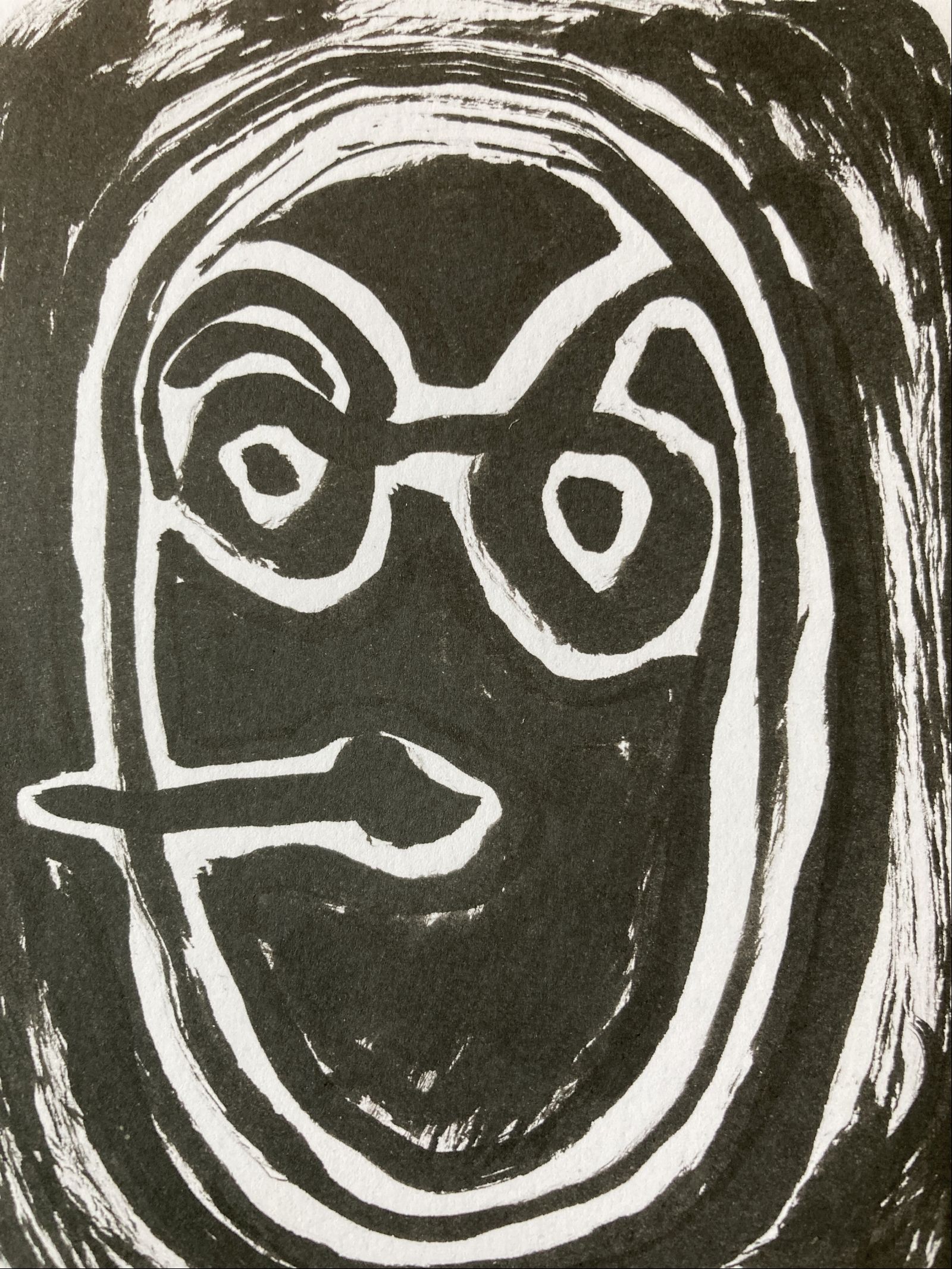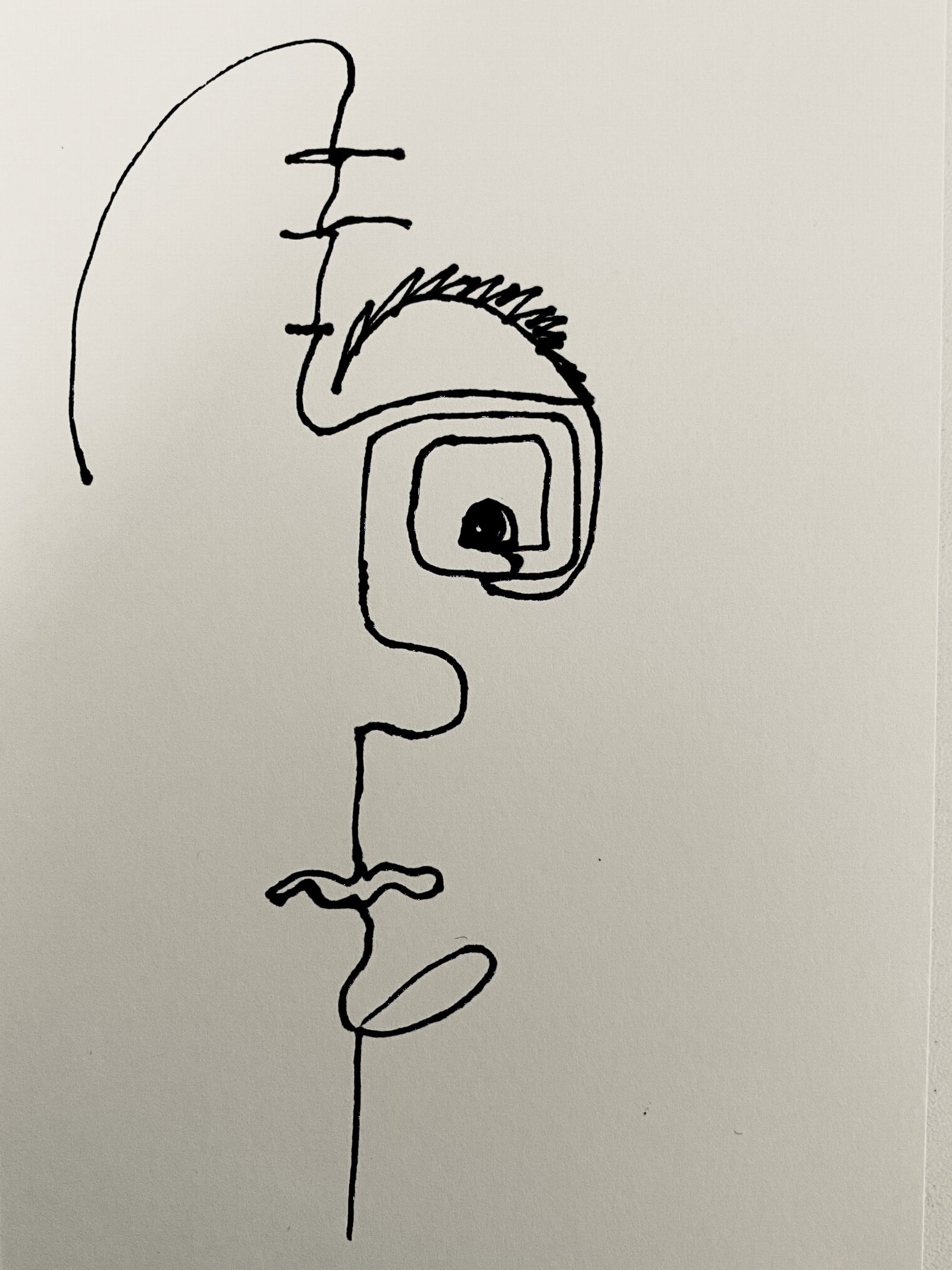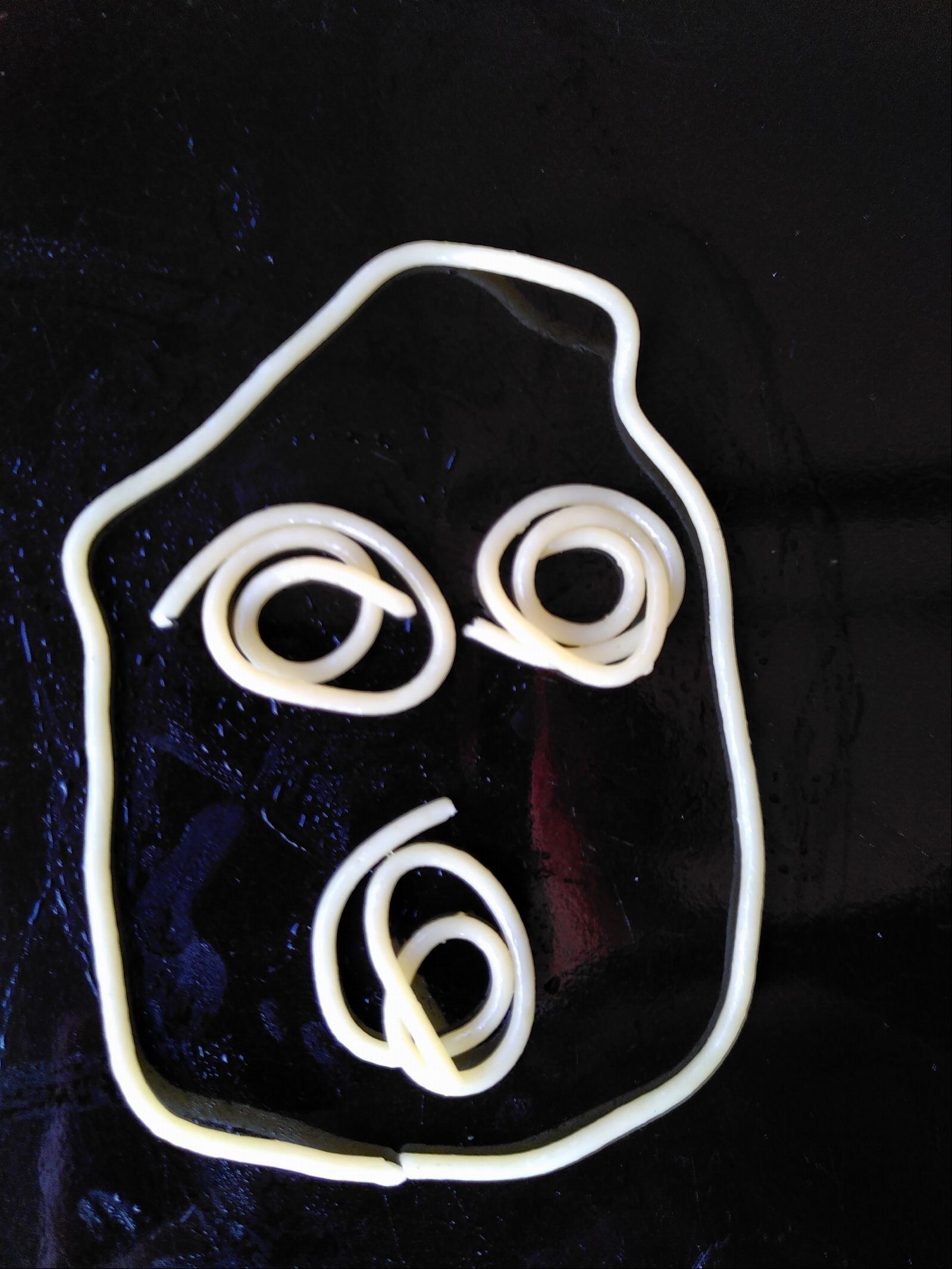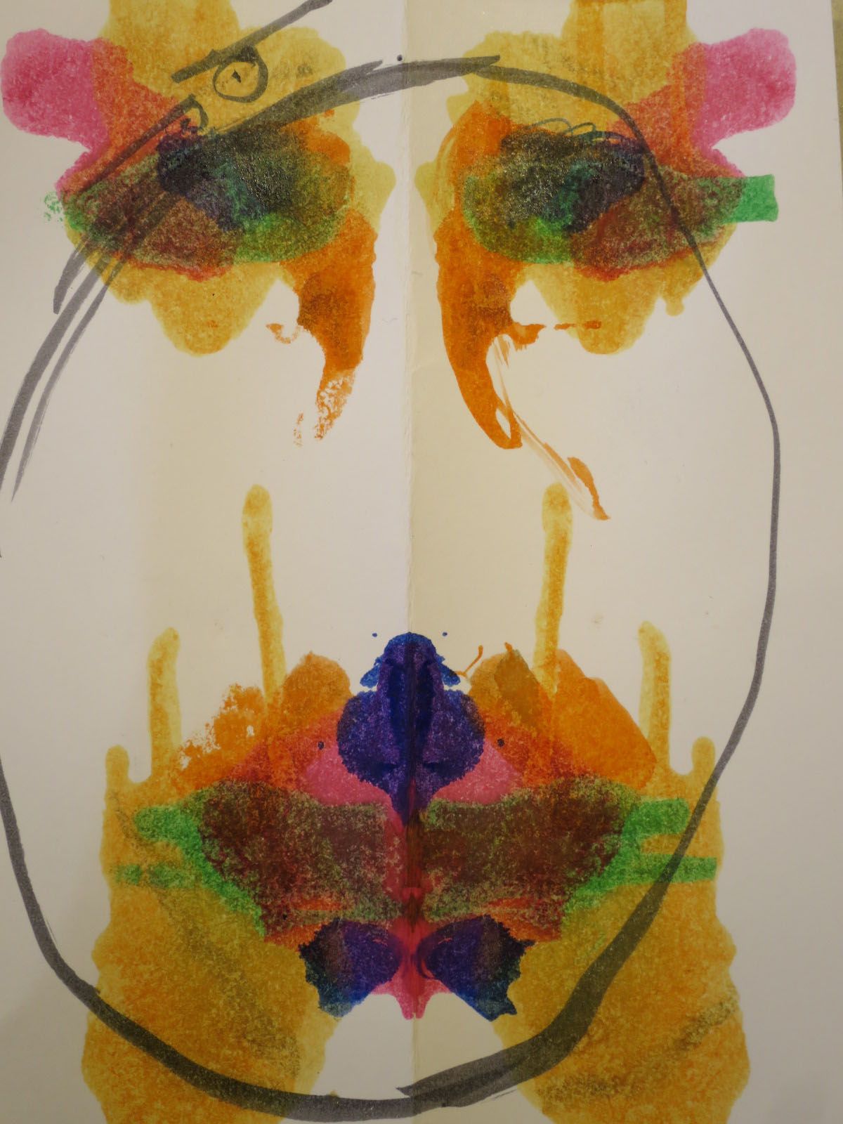 Zeichne ein Oval im Hochformat und ergänze es mit Formen so dass ein bizarres Gesicht zu erkennen oder zu erahnen ist. Das Bild kann gezeichnet, geklebt, gemalt, gelegt, gestempelt oder ... werden.