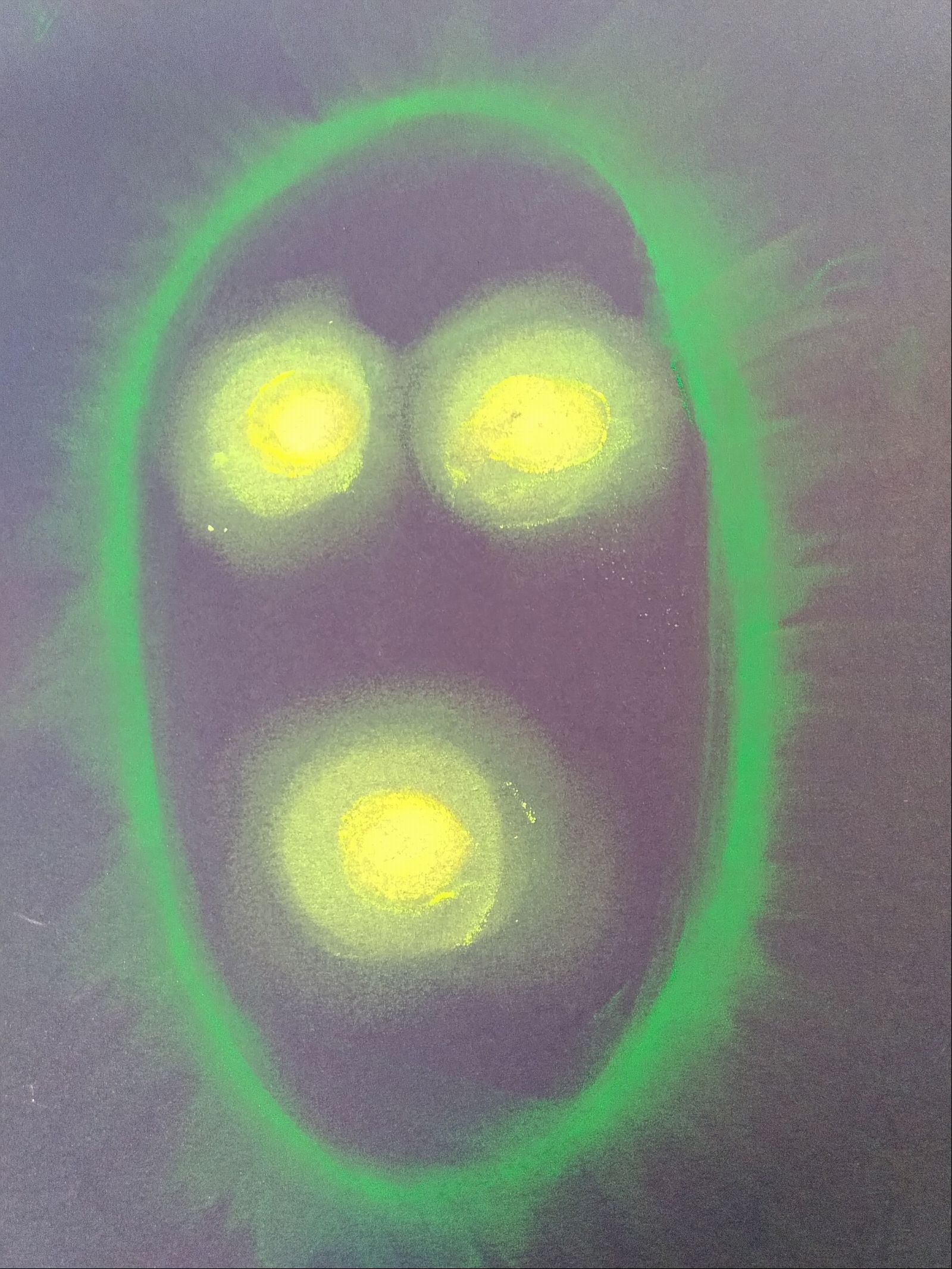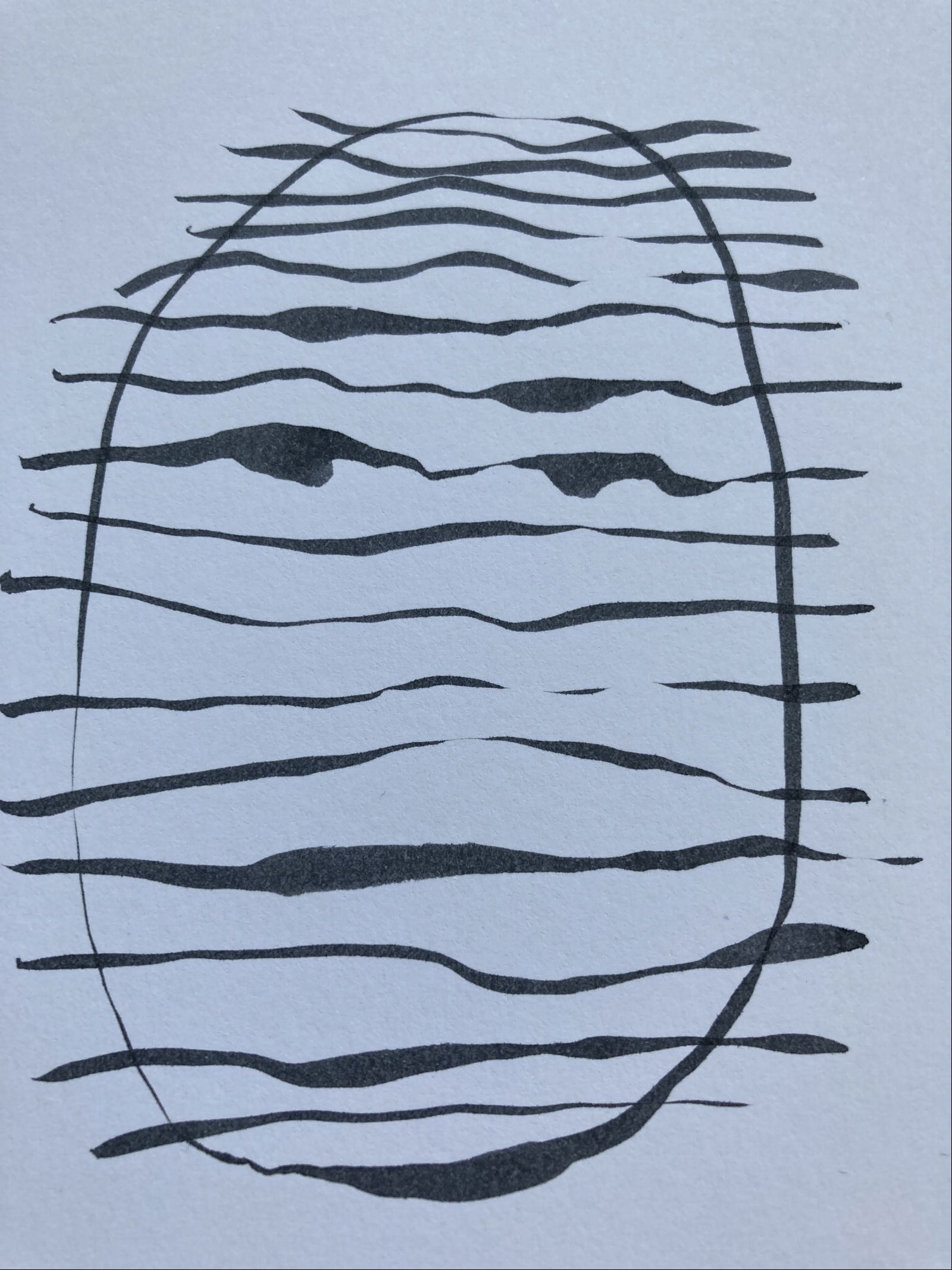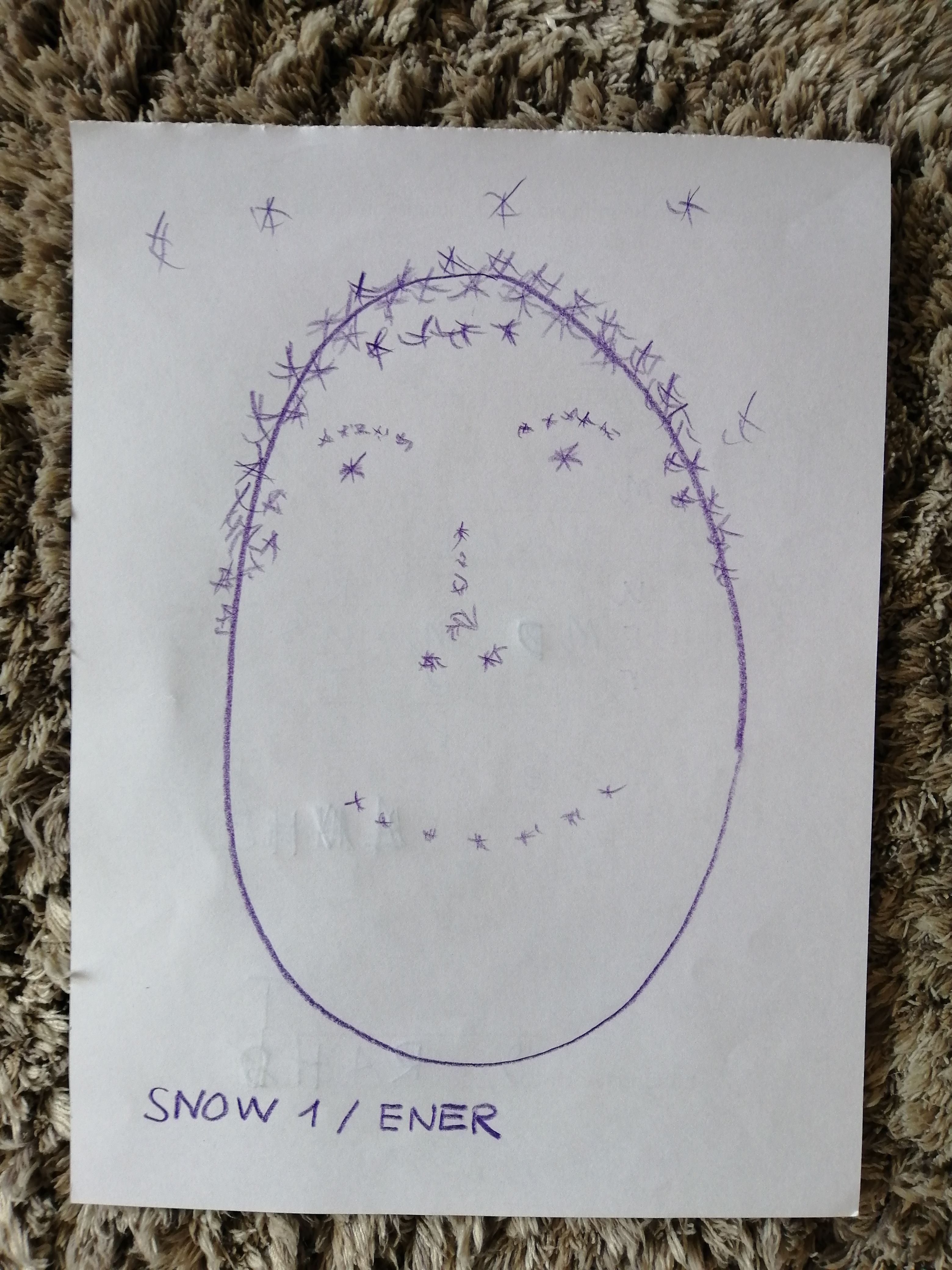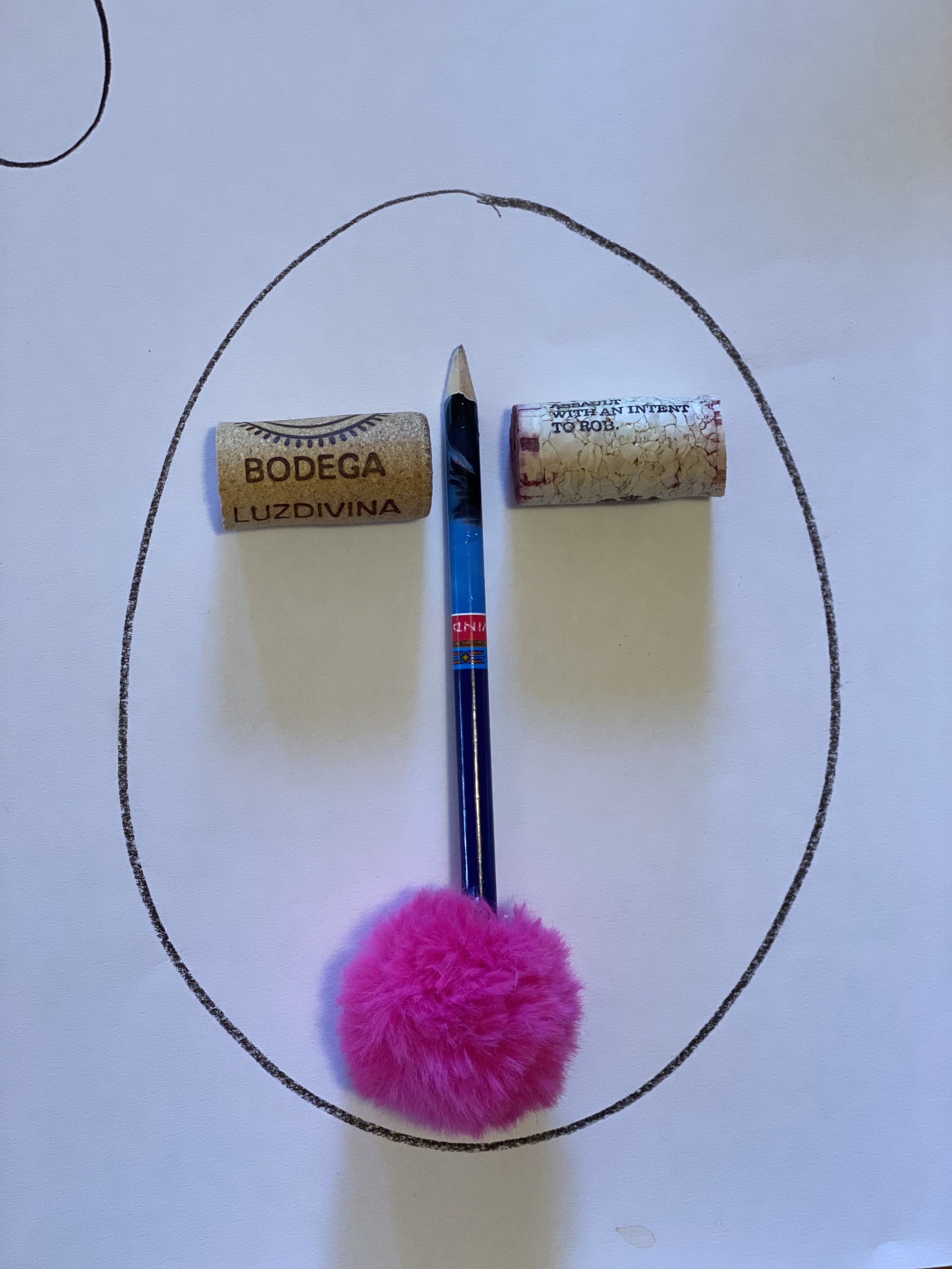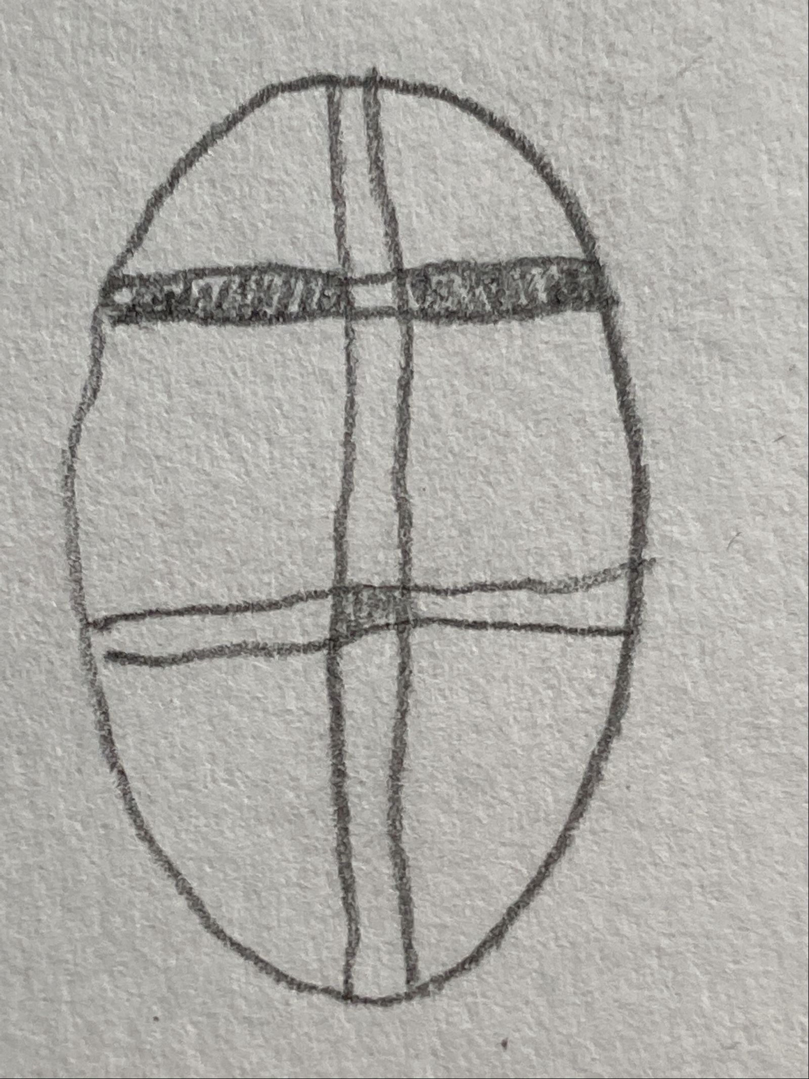 Zeichne ein Oval im Hochformat und ergänze es mit Formen so dass ein bizarres Gesicht zu erkennen oder zu erahnen ist. Das Bild kann gezeichnet, geklebt, gemalt, gelegt, gestempelt oder ... werden.