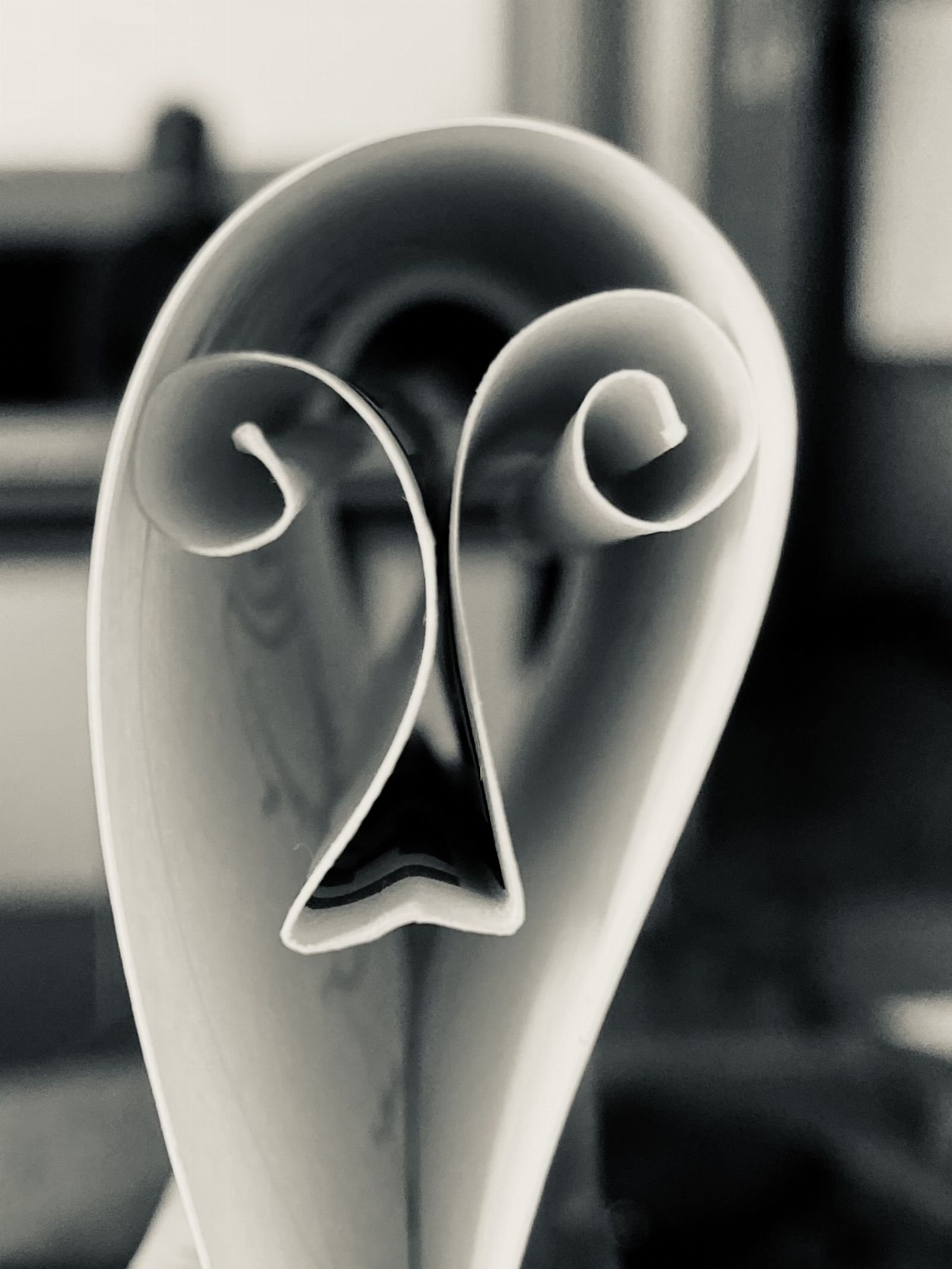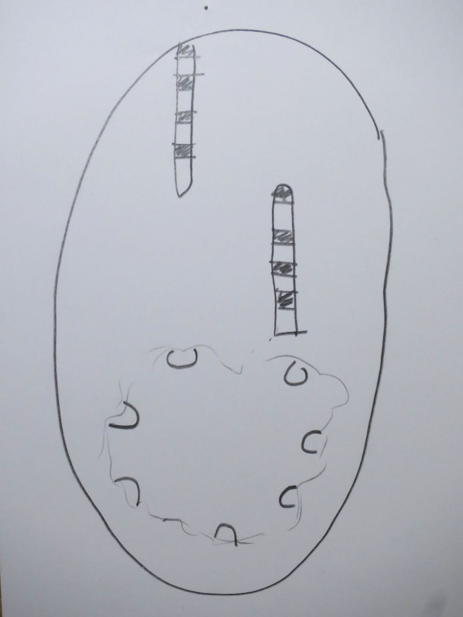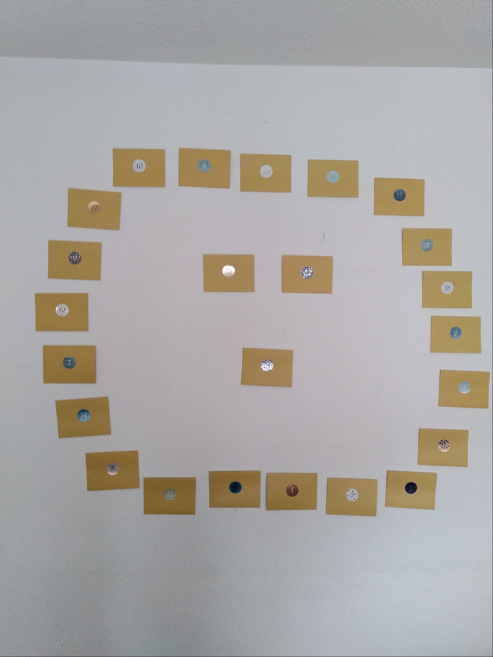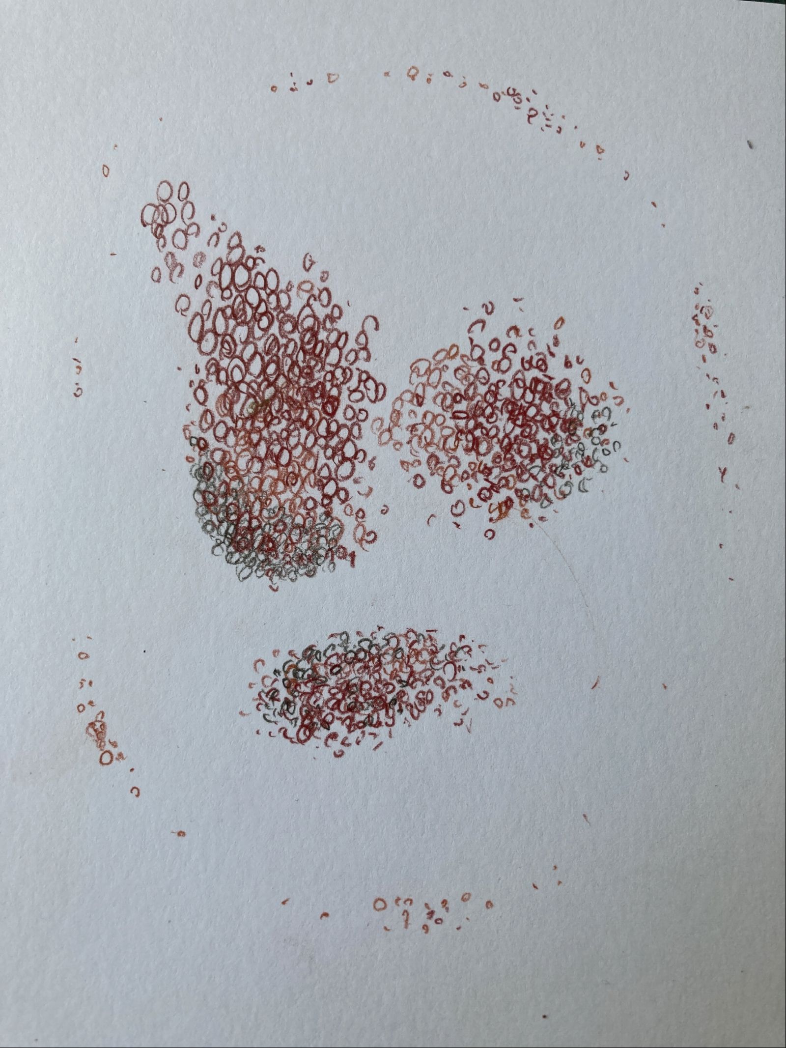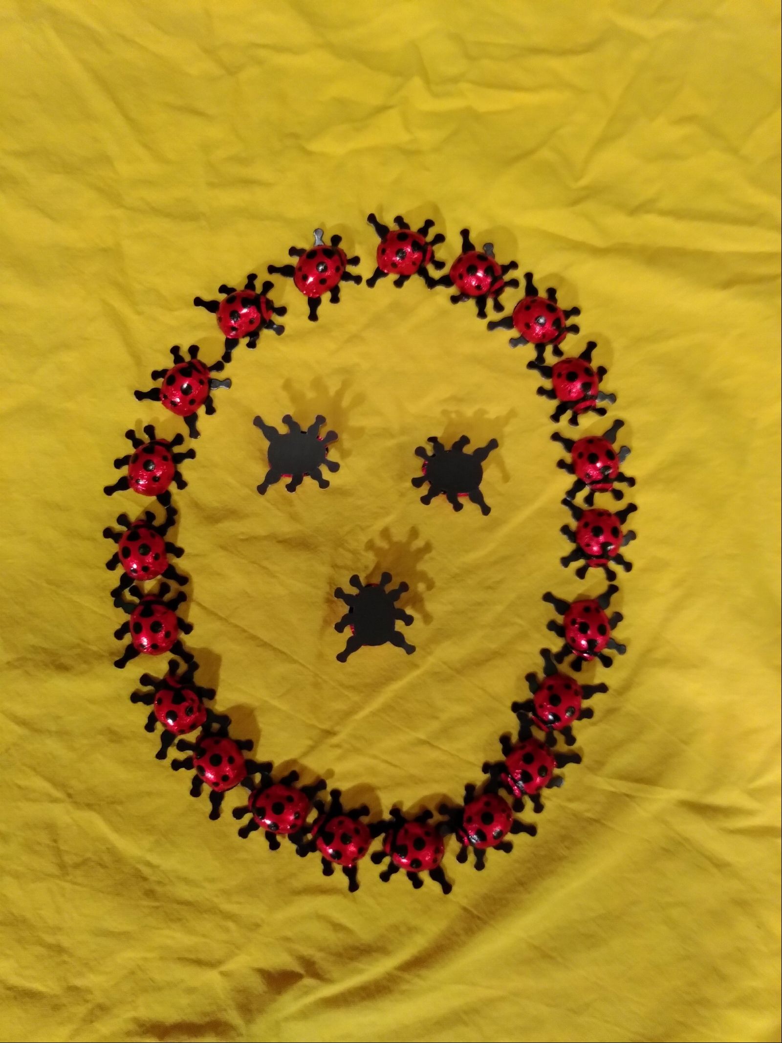 Zeichne ein Oval im Hochformat und ergänze es mit Formen so dass ein bizarres Gesicht zu erkennen oder zu erahnen ist. Das Bild kann gezeichnet, geklebt, gemalt, gelegt, gestempelt oder ... werden.