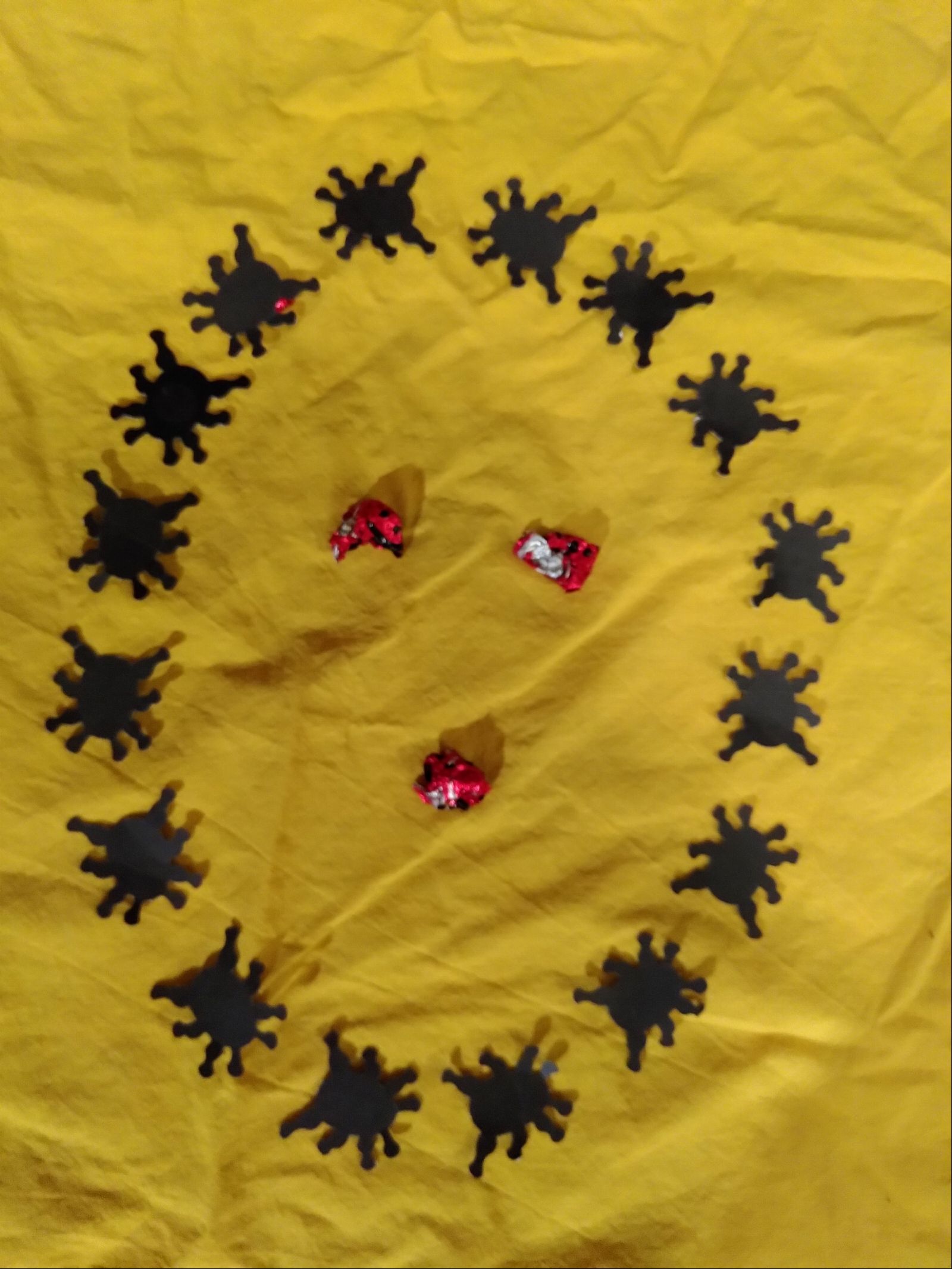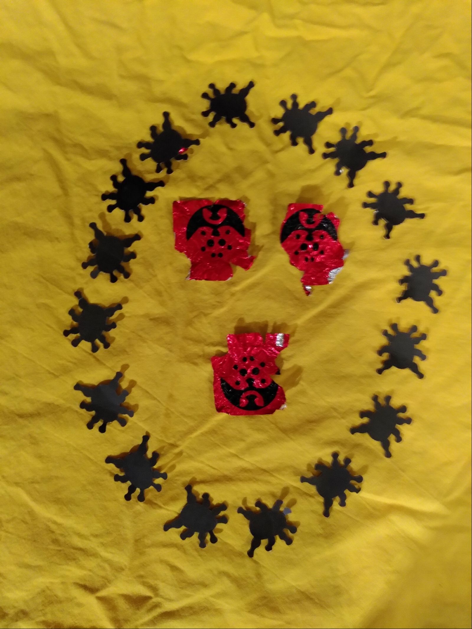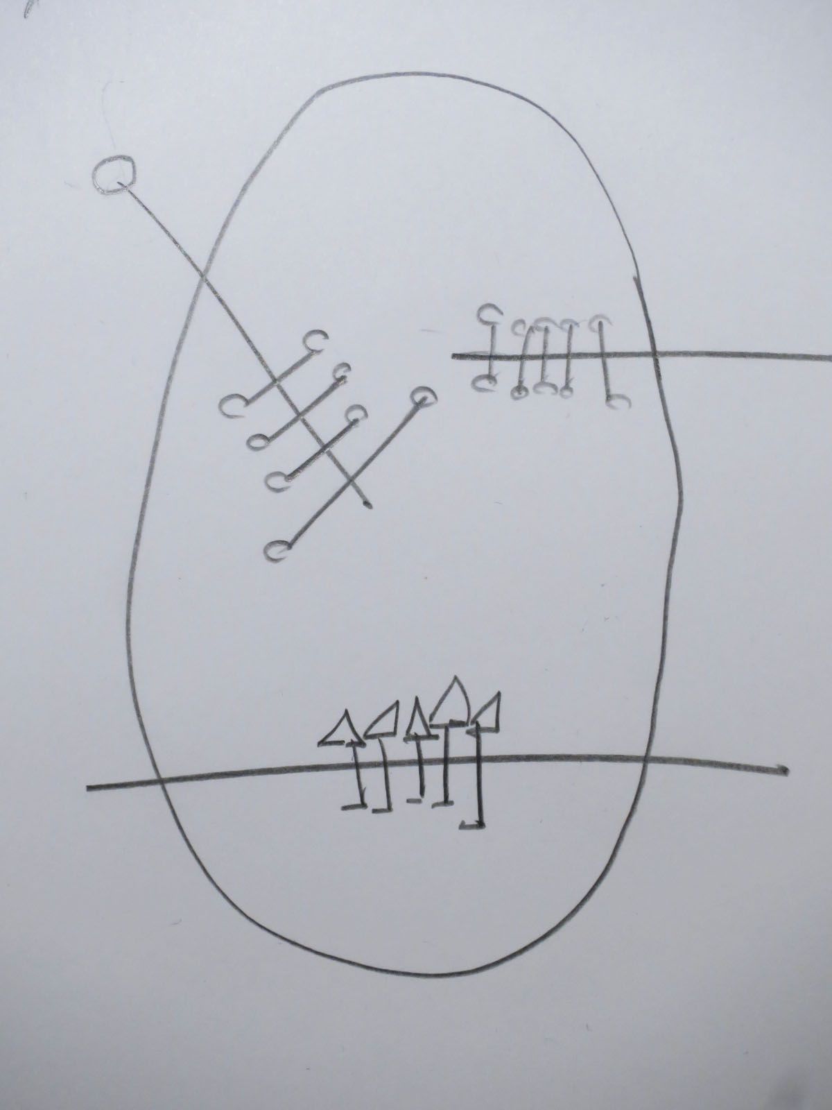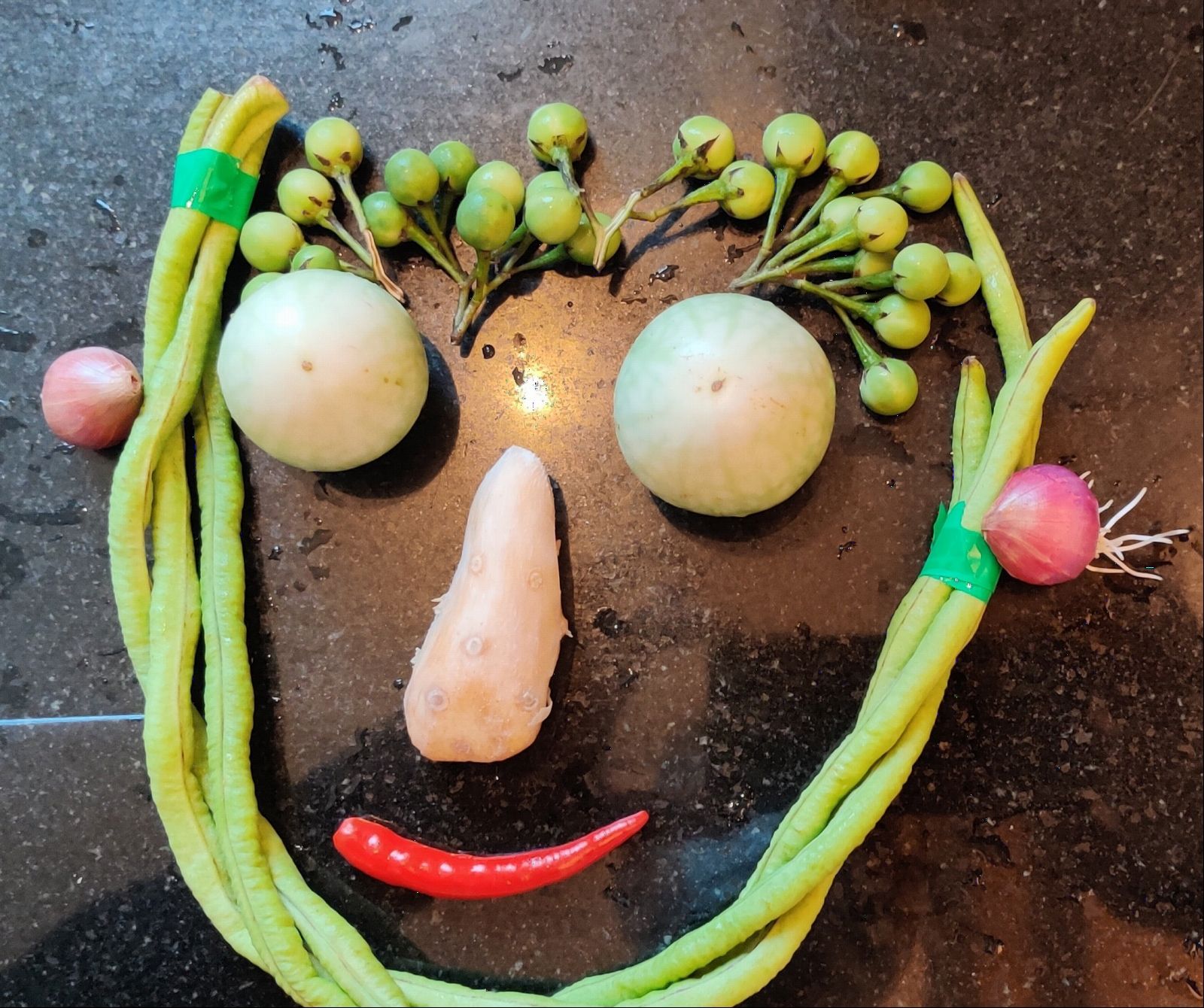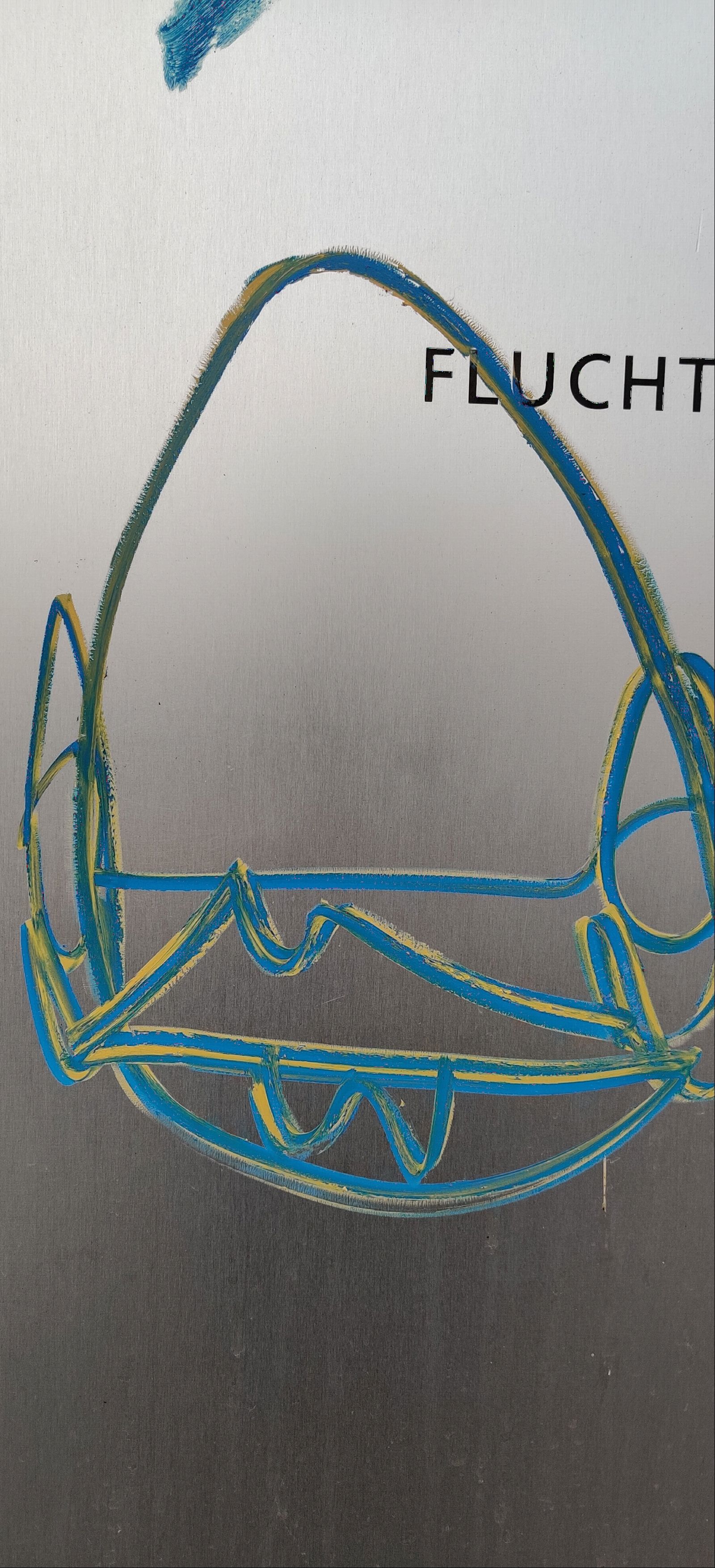 Zeichne ein Oval im Hochformat und ergänze es mit Formen so dass ein bizarres Gesicht zu erkennen oder zu erahnen ist. Das Bild kann gezeichnet, geklebt, gemalt, gelegt, gestempelt oder ... werden.